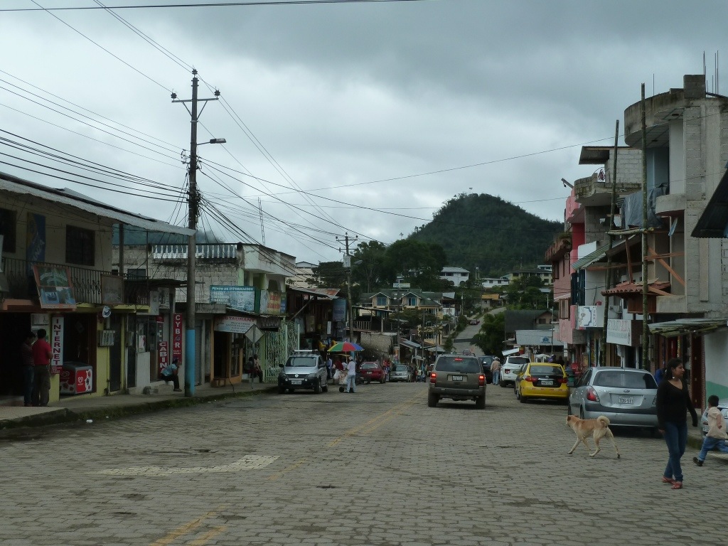 We drove through lush green jungly terrain for a few hours to arrive in the hippy vibe small town of Mindo …. Judging by the age and gear of the scattering of tourists on the streets and cafes, most were here to set off on adventures in extreme sports and climbing expeditions …. this tiny town, set in a fairy tale moist cloud forest would appear to be the start off point … walked through a butterfly research Center, watching colourful hummingbirds and butterflies flitter about, explored the few streets that make up this charming ramshackle town, checking out a chocolate “factory” nearby … had no idea these beans were encased in a shell resembling a papaya!! … dozens of cocoa beans in one big pod …. Although reluctant at first, as I rarely enjoy a desert other than fruit, I felt it rude not to at least sample the gracious gift from the young man who took Ricardo and I through the life cycle of the cocoa bean …. It was a delicious and smooth 95% pure chocolate brownie, flavoured with a just a hint of chilli pepper … this country may yet turn me into a lover of chocolate ….