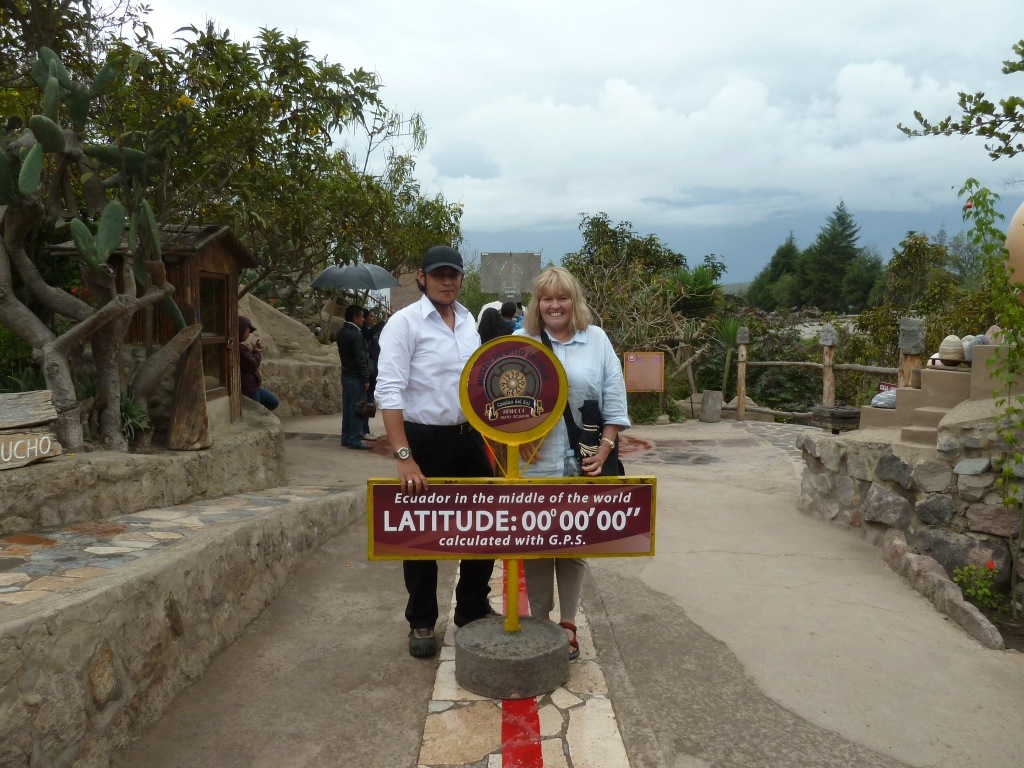 Stopped enroute back to Quito, at the purported location of the equator (Ecuador actually derived its name from the location of the equator, researched by Finnish scientists in the 1800’s who determined Ecuador to be the prime spot to measure the bulge of the equator ….. fascinating ….. who knew?…. Finnish scientists?? … really?? …. love learning these tidbits of info as I travel along π … rumour has it that the actual and bulge of the (not a literal bulge :), equator “line” is a few hundred meters from this spot, in a deep ravine on land owned by the indigenous people of the region … military GPS has tagged it so …. regardless of the rumour, I enjoyed my stint, straddling the equator, watching water drain clock and counter clockwise … a harmless and fun tourist attraction!