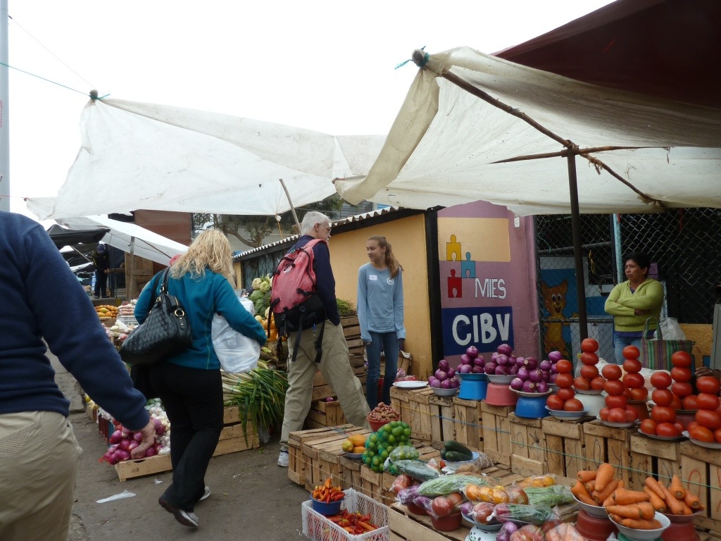 We are a small group for this two week period and are working at Fundac Center One, a building in the center of the Calderon produce and fish market! … our walk meanders through the produce stalls to the building gate … unusual, charming and sometimes stinky from the fish stalls, but certainly an original location!