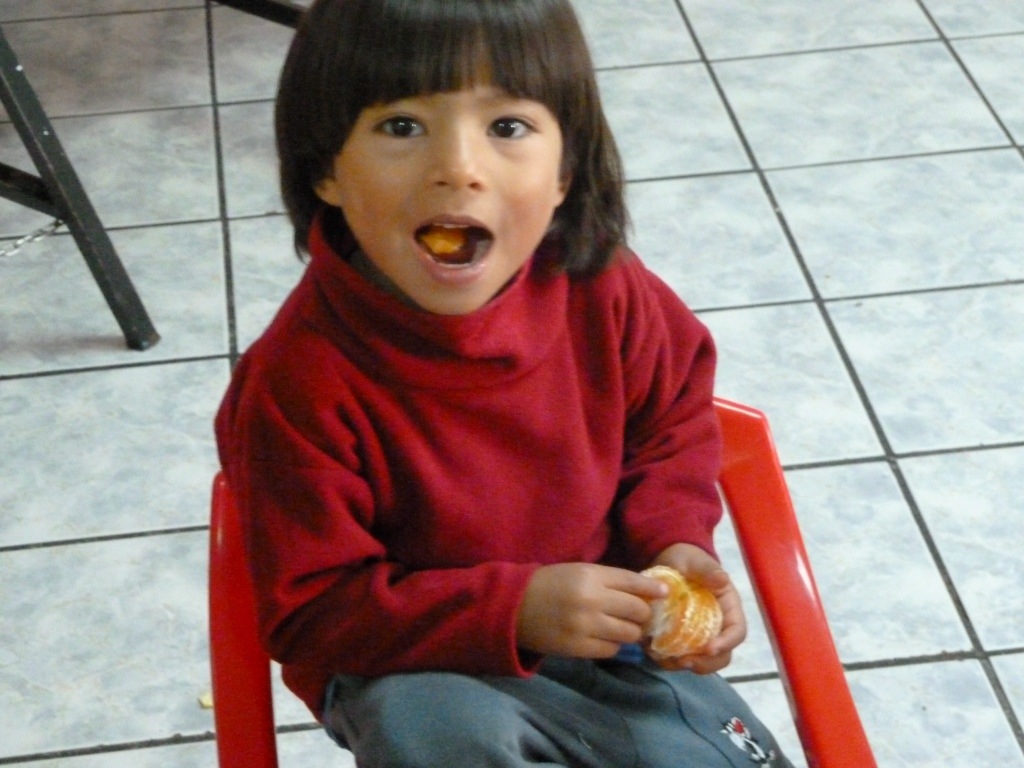 The Center feeds the children unbelievably well on a budget of less than a dollar a day per child! Somewhat easy to do in Ecuador, as produce is unbelievably reasonable … A bag of 40 mandarin oranges are currently selling for one dollar in the market!! A dollar a day covers a breakfast corn or bread dish, a piece of fresh fruit for mid morning snack, a lunch of freshly made corn, bean, quinoa or vegetable soup, followed by a second course of a rice or corn dish with veggies, beans, egg or meat mixed in, washed down with a freshly squeezed glass of juice and every day it is a different fresh juice! One of my daily duties is to help Tia Norma feed the one year olds still in high chairs ….. there are about eight or nine on any given day. I am a bit of a goof ball and enjoy this part of my day … I have some of the babies laughing more often than not at my silly feeding antics … the Tias are adamant that all food is finished to the last drop, as they know most of the children may not eat this well at home … It is a form of kindness but I have a slight aversion to force feeding π¦ … hence my antics … I would rather they be laughing or at least smiling as I spoon in food, than crying … it works!! Right after their lunch, the kids all go down for a one to two hour nap, at which point we are free to walk to a local Calderon restaurant for our own lunch, which inevitably includes a starter course of soup … very Ecuadorian, this soup thing … getting used to it.