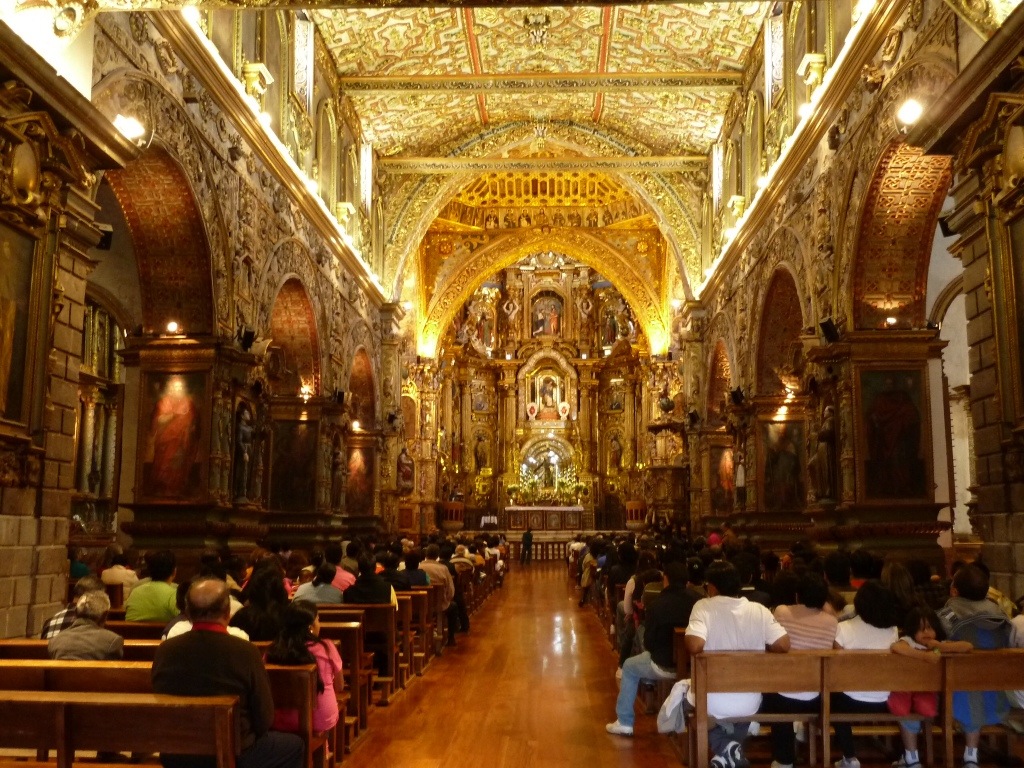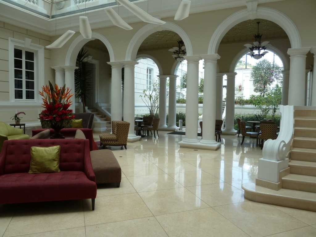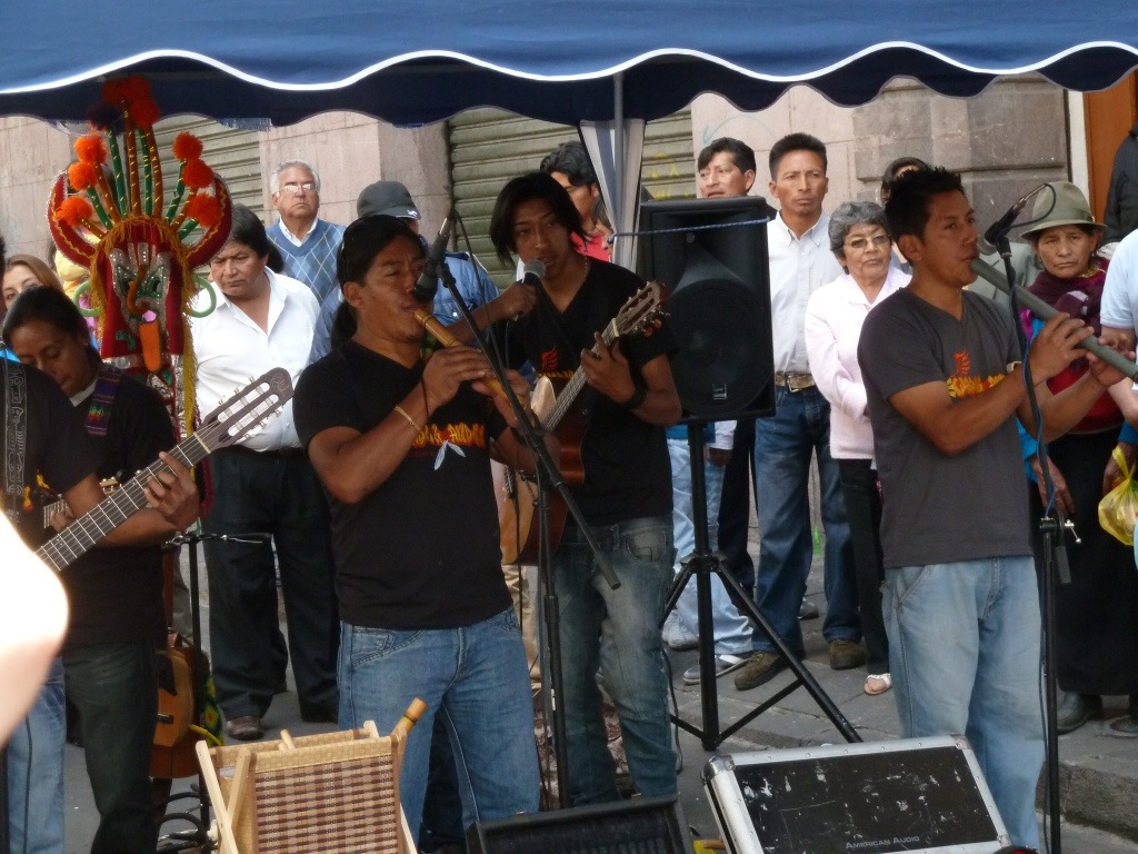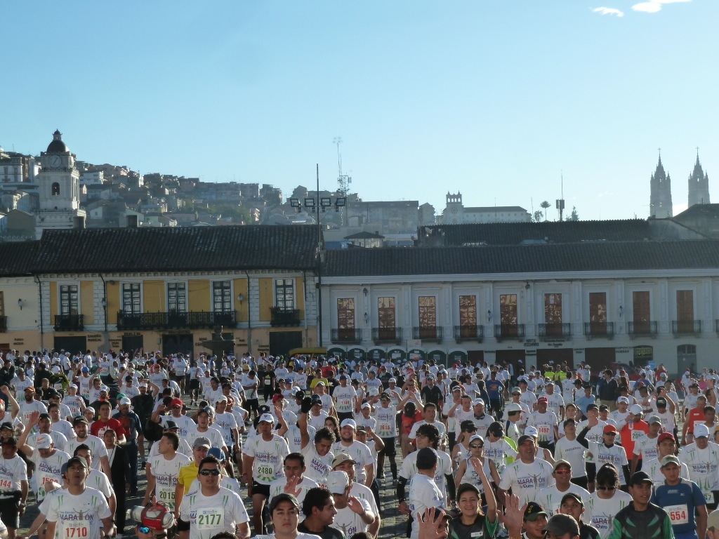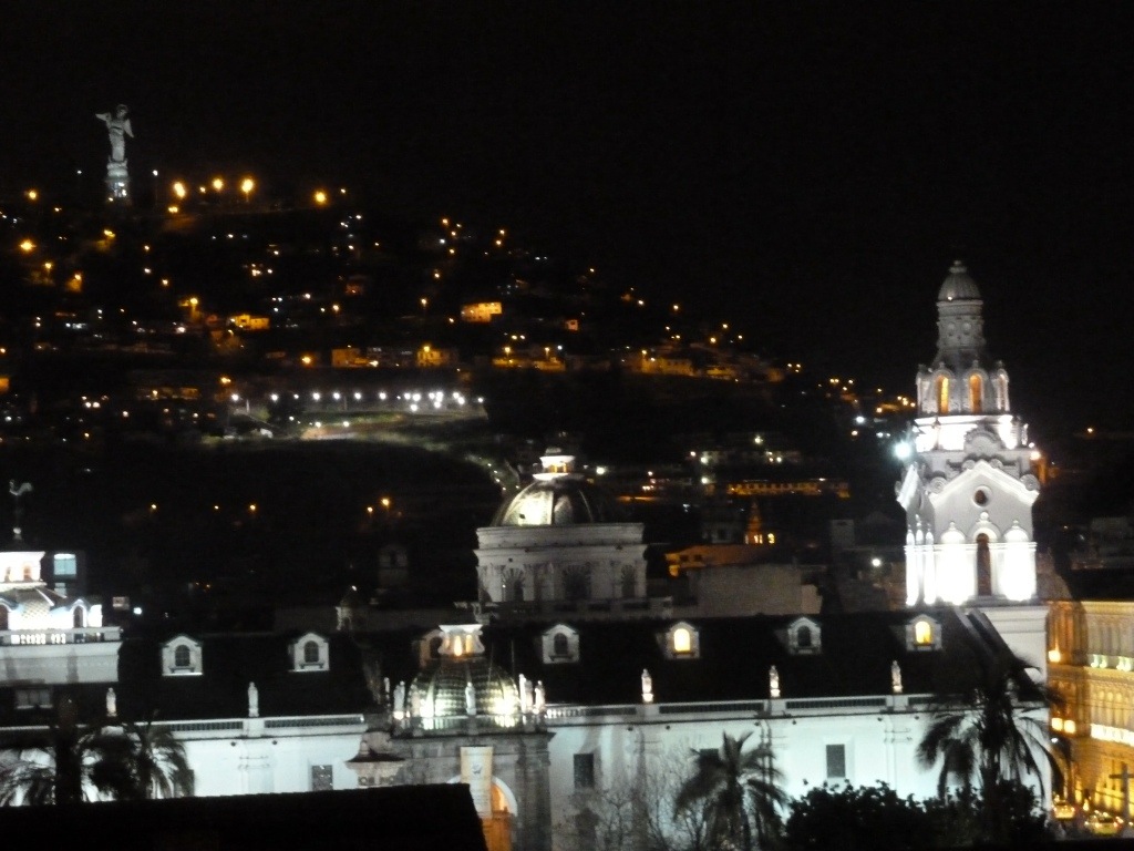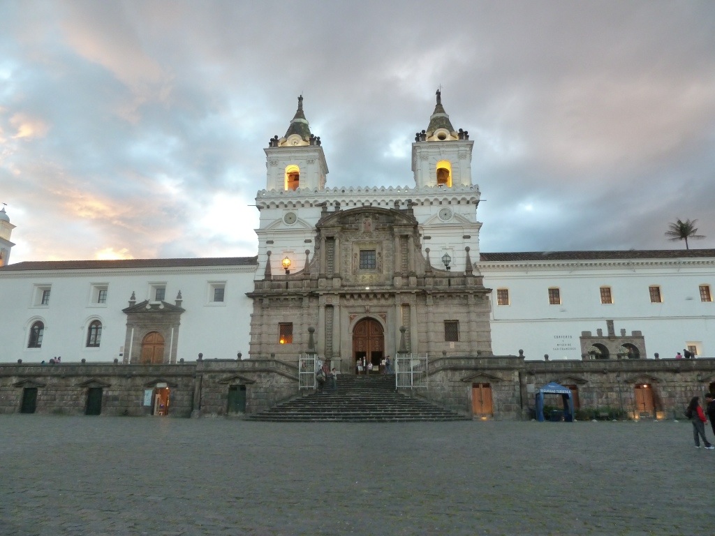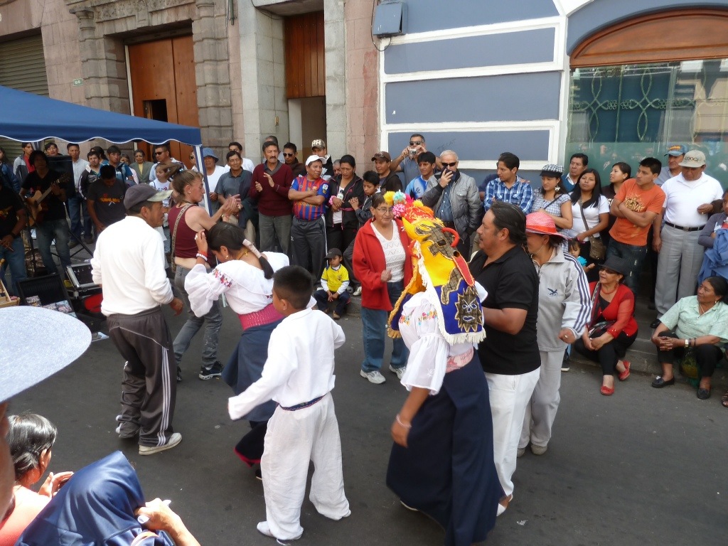 Taking a few days to hang out as a tourist before flying home. I am staying in the charming historical center of Quito, at yet another restored old mansion, in yet another World UNESCO heritage site!! …. this one has belonged to the Gangotena family for the past hundred years. There was a major fire that just about destroyed the whole house in the early 1900’s. It required a complete restoration … a team of Italian architects and craftsman were hired … easy to tell from the Italian arches and pillars everywhere, not to mention fountains π I woke up this morning (around 4:30 am … thankfully I had crashed early π to loud music blaring in front of the hotel …. the hotel overlooks the wide sweeping cobblestone Plaza San Francisco, backed by the mountainous backdrop of Volcan Pichincha. A stunning location! There was a running marathon starting up!! I listened for a few hours, dozing fitfully on and off and finally around 6:30, realizing sleep was impossible, joined everyone in the square, a minute’s walk from my room … some 13 and 20 km runners had already finished … there were 13, 20, 40, and 60 km runs organized!! Apparently a yearly event in Quito … seems wherever I hang my hat in Ecuador, I bump into these yearly festivals or events unawares … it was a pleasant sight that greeted me in the square … those finished their shorter runs, were participating in a warm down exercise class, which I also joined in on π Not a bad wake up call after all π … loved walking these old streets today … totally exhilarating to get some exercise and sunshine in after the last few weeks where it just never seemed to work out time wise … this cobbly town is just fabulous!! … street musicians and entertainers on every block! …. it is Sunday! ….. even managed to sit down to mass at one point in the Monasterio de San Francisco, Quito’s largest colonial structure and a convenient few steps from Gangotena π ….. love the Andean Indigenous flute music best … I was in heaven, strolling here and there all day, music following me everywhere …. could not have asked for a more delightful day to finish my time here in Ecuador!
