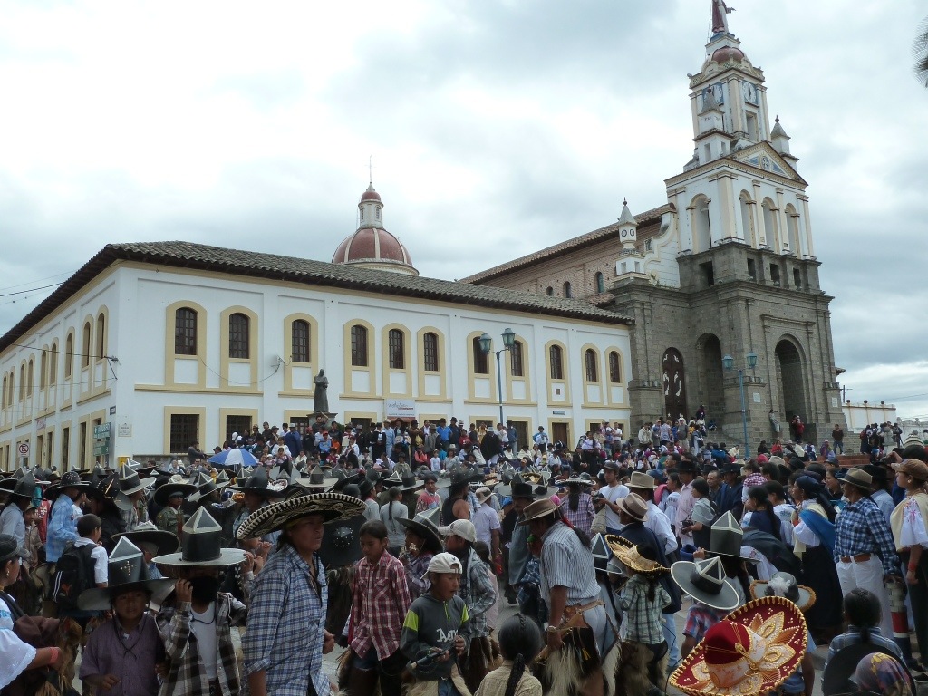 My explorations took me from the stunning surreal landscape and wildlife of the enchanted GalΓ‘pagos Islands to 17th century churches, monasteries, restored mansions, haciendas, photogenic plazas, architectural colonial treasures, cobbly streets of Quito, Cuenca (both Unesco World Heritage Sites), to the small pastoral village of Zuleta, and on to the lively leather capital of Ecuador .. Cotacachi where by chance, I was able to participate (well, jostled by the mob is more like it!:) in a yearly Indigenous Heritage Festival that went on non stop for three days …. a bizarre parade of hundreds of male Indigenous Otavalenos dressed in cowboyish costumes, marching and chanting for hours and hours at a time, every day of the three days! The women and children followed on the sidelines, passing water or juice or worse … the local corn hooch, to their men.