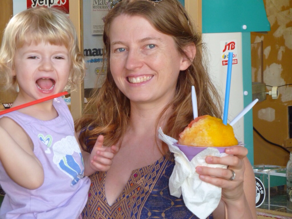 It was not a planned ‘girl’s holiday’ …. but as Rob was unable to come due to work issues, it ended up being a nice little break for the three of us regardless. We adjusted admirably 🙂 …. I am sure Sarah would have preferred her husband and Aliana, her daddy …. but …. they got the consolation prize …. Me:) !! ….. fun days exploring beaches, building endless castles, watching turtles and whales, or a washed up seal, savouring delicious papaya or a mango flavoured shaved ice …. Sarah goggled and found the one place in Maui that uses only fresh fruit as their base … not just sugary syrup …. delicious! Sarah also located the one place on the island that served cold pressed fresh veggie juices …. and probiotic boosters …. we felt sinfully healthy although flu bug did still hit albeit made but a brief visit thanks in part to finding these health boosters I’m sure 🙂 ….