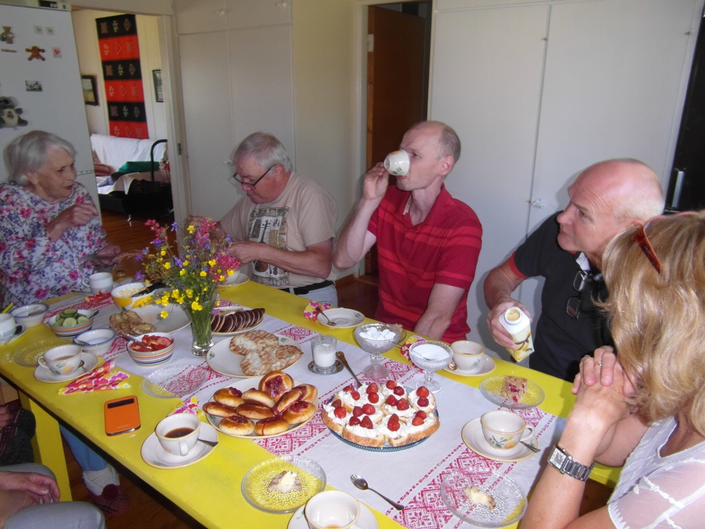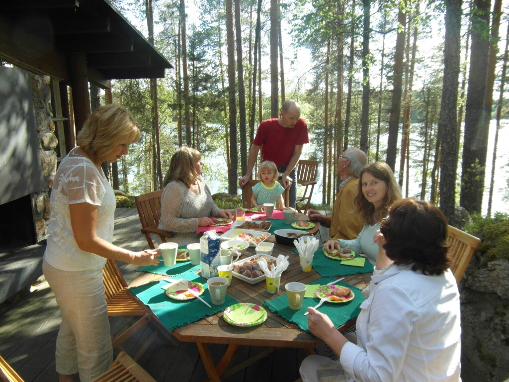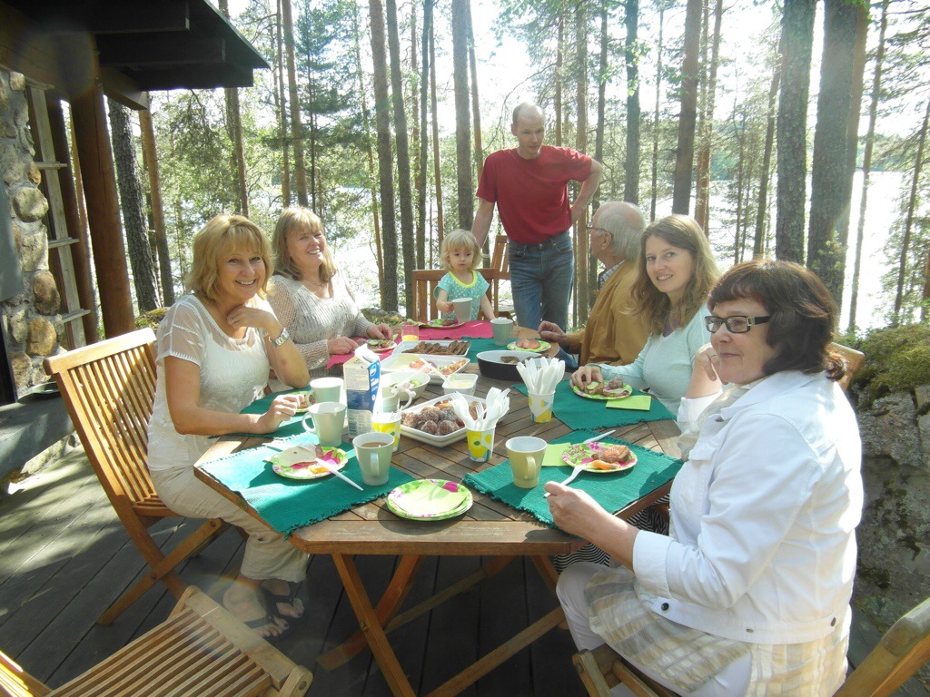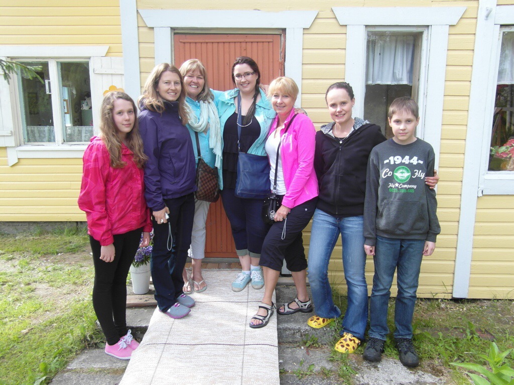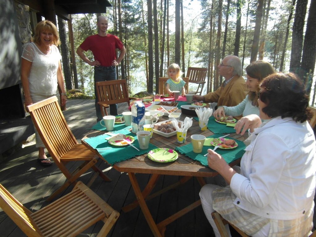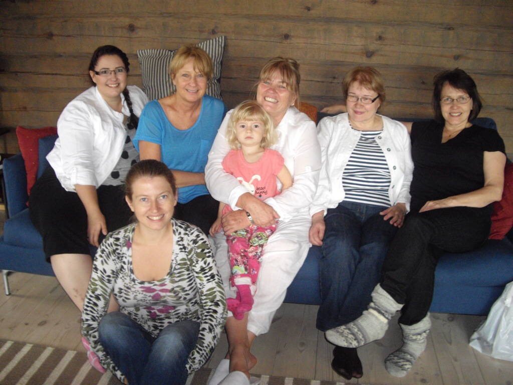 Finland, once shrouded in the mystery of my long forgotten roots, reemerges as a living breathing reality. I will undoubtedly spend months absorbing what I learned ….. about both Finland, the extended family within and my inner connections to all of it. I fell in love with this beautiful country of a zillion lakes, home to the land of the midnight summer sun! I love that I finally walked the land my parents once called home, sat in the kitchen where mother cooked piirakaat, fish soup, her delicious sour dough rye bread, pulla, Christmas cookies! …. explored the sauna where I was born! … I love that I finally was able to connect with real live cousins, an aunt, an uncle and know that I do indeed have a heritage to be savoured, valued and cherished …. What a thrill to enjoy that Finnish national institution, the sauna …. It is a way of life in Finland and for a population of five and a half million, there are over two million saunas in the country, most of them at summer cottages … the treasured kesamokki!! There is no finer feeling than sweating it out in a wood-fired lakeside sauna, followed by a skinny dip in pristine cool lake water!! …. sharing this with my sister, our cousins, and having my daughter, granddaughter, and niece also embrace these experiences, filled the cup that just seemed to keep overflowing. The Saturday night sauna ritual was a big part of our childhood growing up in Canada and to a large extent I kept that going in its own little way within my immediate family during Sarah and Tim’s early childhood! I love also, that I feel comfortable around people I have just barely met, because of the family ties that bind us, not to mention our similar noses 🙂 ….. yes …. love is the cornerstone of it all!