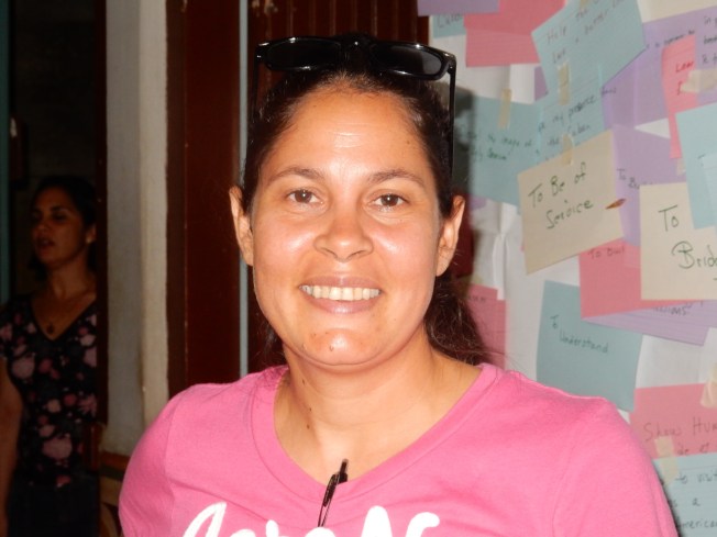 …. Glenda contemplating a next fun activity for our students!! Her “tooty toot” dance was a total goofy hit with us all!!