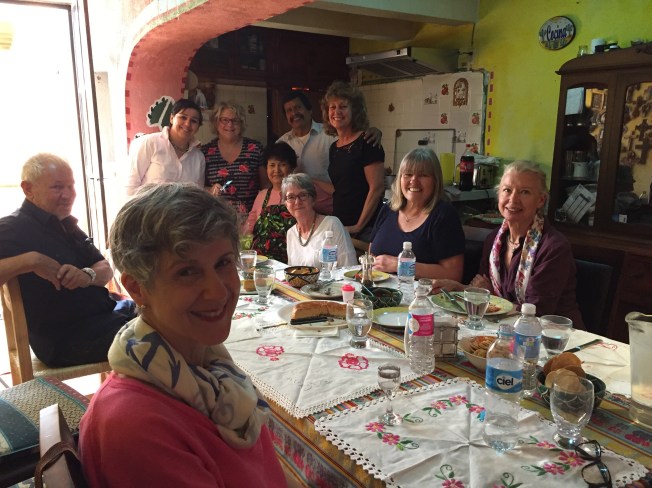 Yesterday, Bev and I attended an entertaining fundraiser … the entertainment consisted of a short comedic play, a book reading, a story shared of an ordinary/extraordinary life, complemented by a most delicious luncheon, all cooked, served and hosted by ‘Mujeres en Cambio’, a dedicated group of women invested in helping young San Miguel girls receive an education via scholarship funds. It is a joy to attend so many interesting, stimulating, heart warming events here in such a short time period! The mild weather of course, makes everything very conducive to do so. We walk everywhere and the distances to functions are never more than a ten or fifteen minute walk away. Many come here to learn Spanish. I take a few beginner classes at the library … a slow go for me but I remain content to pick up a word here and there every year … seems hurrying is not my thing much anymore.
