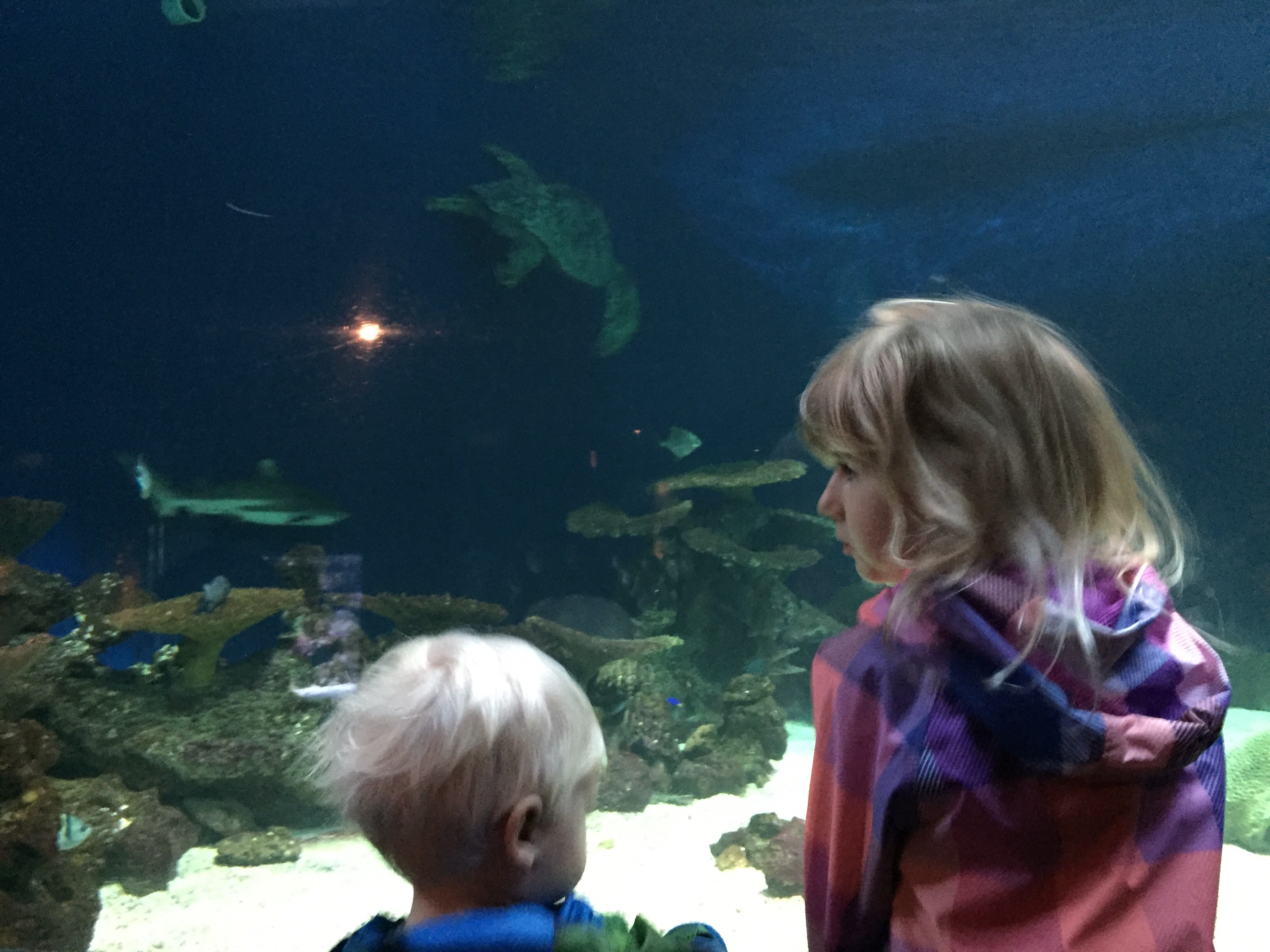 Oliver and Aliana mesmerized at the Vancouver Aquarium