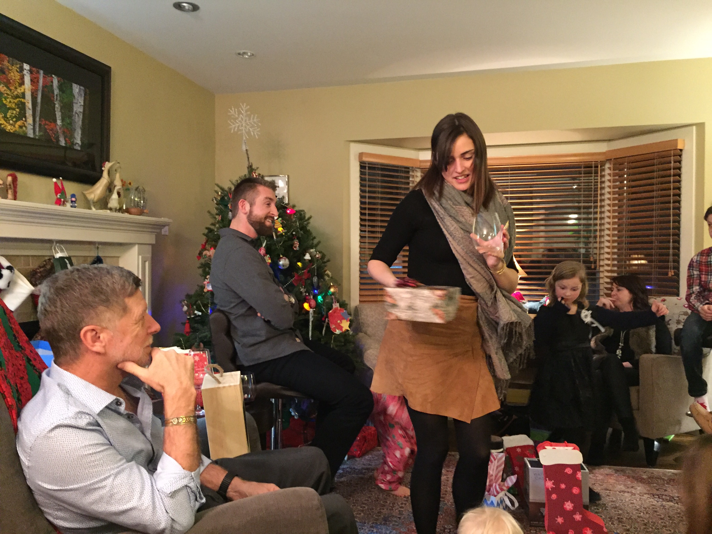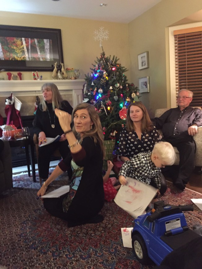 Age certainly allows for a broader perspective on the emotionally charged Christmas family holiday! I flash back to all the hoopla I was so pulled into as a young mom of two children in the 80’s, 90’s, and well into the new millennium!!! Christmas was often way over the top …. a month of creating a festive atmosphere, functions, concerts, plays, gifts …. oh far far too many gifts!! Memory takes me back to my own humble childhood …. Christmas Eve saunas for everyone, proceeded by the delicious Finnish ”Kalakukko” … an oval loaf of rye bread with a pork and fish filling … a delicious bread cocoon with pork, fish and pototoes simmering inside for several hours in a low temperature oven … this was a traditional Christmas Eve meal in Finland that my parents carried with them to Canada … thankfully!! My sisters and I, to this day, remember how much we all savoured our mother’s Kalakukko!! Strange and sad that not one of ‘Aili’s’ six daughters ever learned to bake it! The gift opening that all children relish, was endless hours (or so it seemed to young children) after the early evening meal and when the last family member finally emerged from the sauna! Aaah … beautiful poignant memories. Times have changed …. Nostalgic longings for more simplicity seem to always surface during the Christmas season …. there is little doubt that my children and grandchildren are my joys today and undoubtedly will continue to be, always taking some form of centre stage in my heart … I am attempting to encourage a cabin Christmas somewhere once again for next year … will see … I remind myself I make valiant attempts every year, with little success π Many years ago, Brian and I organized and hosted our family (Brian’s side of the family chain actually) to three cabin Christmases in Fernie, spaced out over six years … I personally always thoroughly enjoyed them. Will see if we can pull that off next year with my children and their families. Posting some pictures of various Christmas functions from the Webb/Overmann/Hawkes/Cullen/McMechan potluck Christmas gift exchange at Sarah and Rob’s,