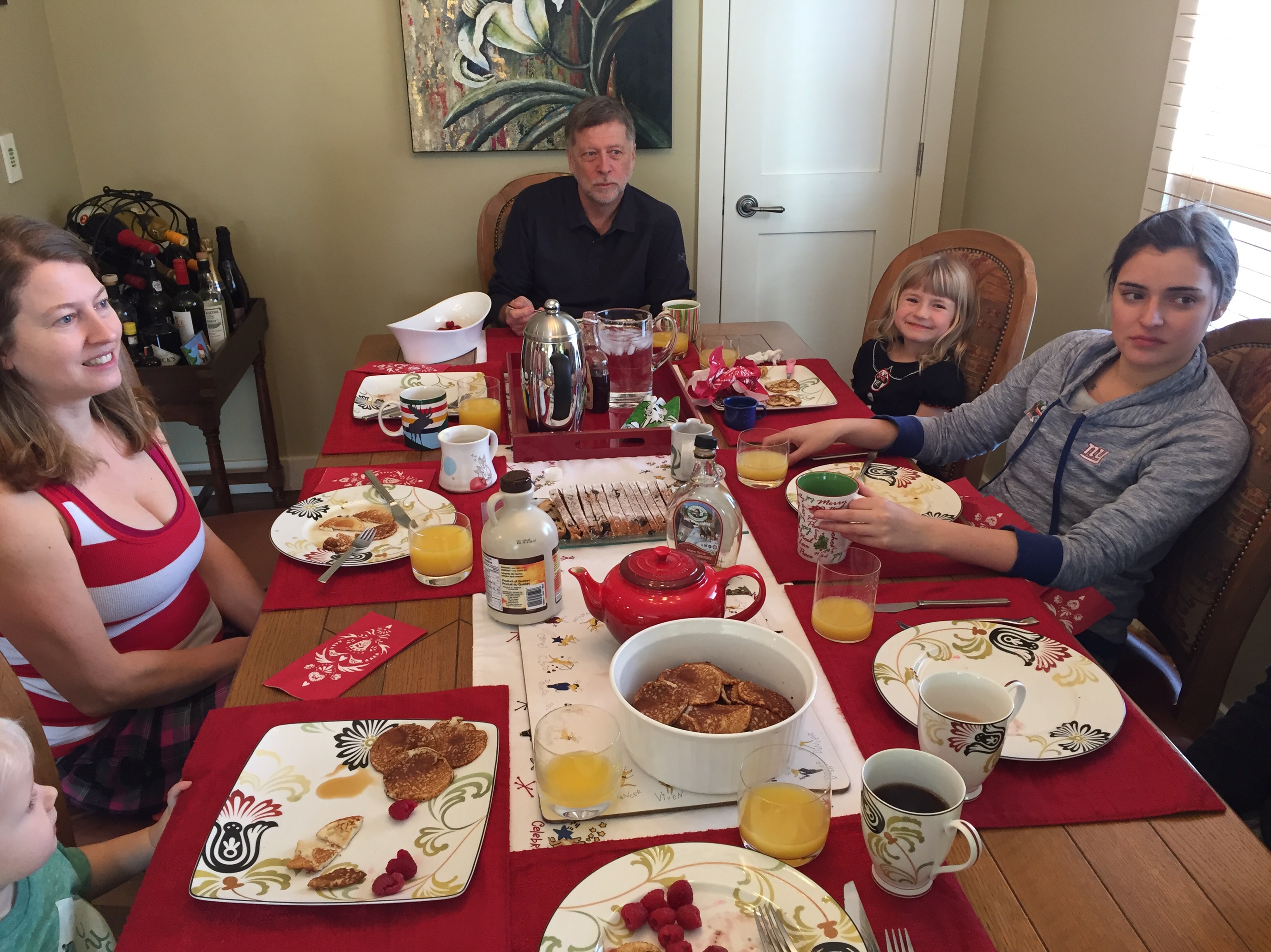 to Christmas Eve festivities back at Sarah & Rob’s and onward to Christmas Day at my niece and nephew’s place … (Sandra and Bob) … The Webb/Overmann arm of our family had earlier enjoyed our traditional Finnish pancake breakfast on Christmas morning, courtesy of Brian’s talents (something I encouraged my mother to teach Brian to make so very long ago … I thought it wise at the time to bring in the male side of the family into the tradition π … hopefully Brian has taught Tim well ?? ) All were beautiful warm family functions to close off 2016 … onward to a peaceful 2017 π
