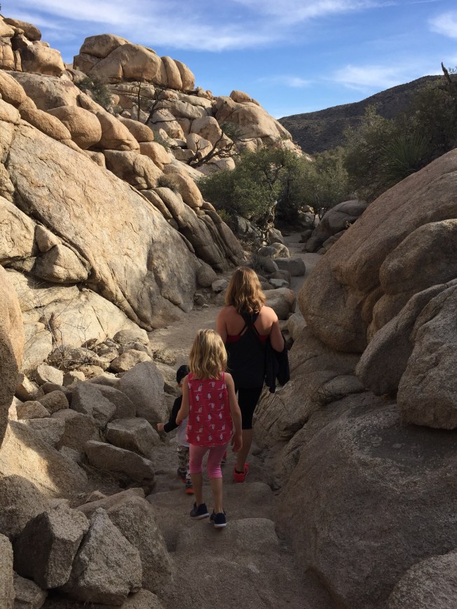 We leave the lush Palm Desert vistas behind and drive onward to Joshua Tree National Park for a little hiking and exploring around the stunning rock formations and boulders … this area has always been one of my favourite parts of the desert so it was nice to share this with Sarah and the kids. We opt for a night in an Airbnb trailer on the edge of the park, hoping to catch a starry sky, far removed as we are from the distraction of city lights. The evening’s overcast sky left us a little disappointed. We fall asleep “listening” to the silence and stillness of the desert. Winds moved in at some point in the middle of the night pushing the clouds westward! Sarah wakes up Aliana and I, leaving Oliver to his deep slumber! A fully lit, constellation rich sky our reward for climbing out from under warm comforters … the desert gets quite cool at night making it hard to crawl out from the warmth but glad we did! It is a deeply spiritual experience to gaze at the beauty of the twinkling heavens above us. Certainly a sense of Godly magnificence fills our hearts. More than twenty years ago, while holidaying at a bed and breakfast farm in Prince Edward Island, Brian and I woke up our sleeping kids to experience one of nature’s finest gifts of the night … the Milky Way!! … undoubtedly that memory lives strongly in Sarah and she wants a similar experience for her own children … prompting a return next year!