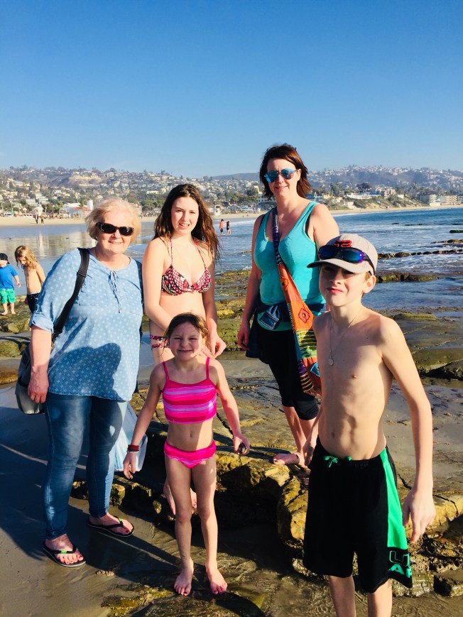 Sarah, the kids and I … hmmm (well, okay okay, Sarah and Google Maps who are equal partners, equally competent!!) navigate our way from Joshua Tree through the freeway madness of LA surprisingly smoothly and we meet up at our hotel in the heart of Disneyland with more family! Rob, his mom Linda, sister Lisa, kids Brooklyn, Ethan and Addison arrive within a few minutes of our own arrival … timing is everything! We chuck our bags, complete toiletry due diligence and head straight to Laguna Beach nearby, to shake off the bugs of travel. Lunch and beach walking is in order! Best decision yet! I could happily have dumped my bag at the nearest beach hut available and stayed indefinitely … on a bare bones sleeping bag! Amusement parks are not exactly my thing as anyone who knows me, knows 🙂 but I will pretty much do anything for Aliana and Oliver! I loved Laguna Beach! It was a great way for everyone to shake off remnants of an early morning flight and the commute from Calgary or even our own short bit from Palm Springs. The kids all unequivocally (and adults too, especially me!!) thoroughly enjoyed our long leisurely stroll along the beach … the children ran in and out of the surf exploring tidal pools, revelling in beachside nature, digging in the sand! We stocked up on healthy snacks and fruit for kids and grownups alike at Wholefoods nearby and head back to Disneyland. A great week of fun for the young and old, well, older, not old 🙂 ensued … pictures tell a better story than I …