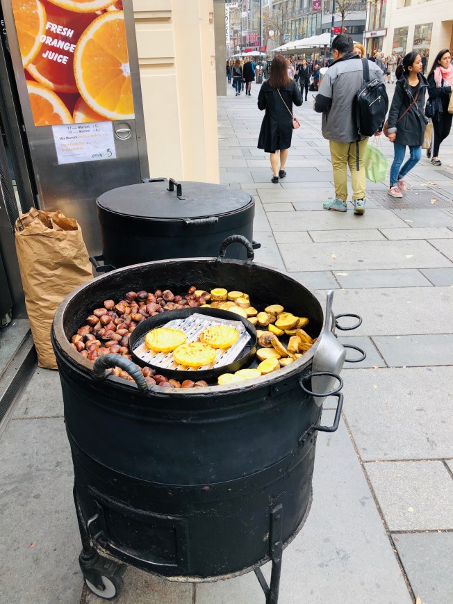At Rudolf and Elizabeth’s home we were introduced to some local treats … tasty liver pates and bacon fat spreads on my favourite kinds of breads … wholesome dark, seed heavy Austrian bread, (surprisingly delicious spread, despite my first rather reticent reaction to a spread made with bacon fat!!), roasted chestnuts wrapped in newsprint to keep them warm, making for easier peeling … so delicious, as was sampling the local sturm wine! For a very brief period, from the end of September to mid October it is Sturmzeit in Austria. This is the only time of year the drink called Sturm is consumed throughout the country. Because of rapid fermentation (which could cause the bottle to explode if corked), Sturm cannot be stored and must be consumed within a few days of purchase.