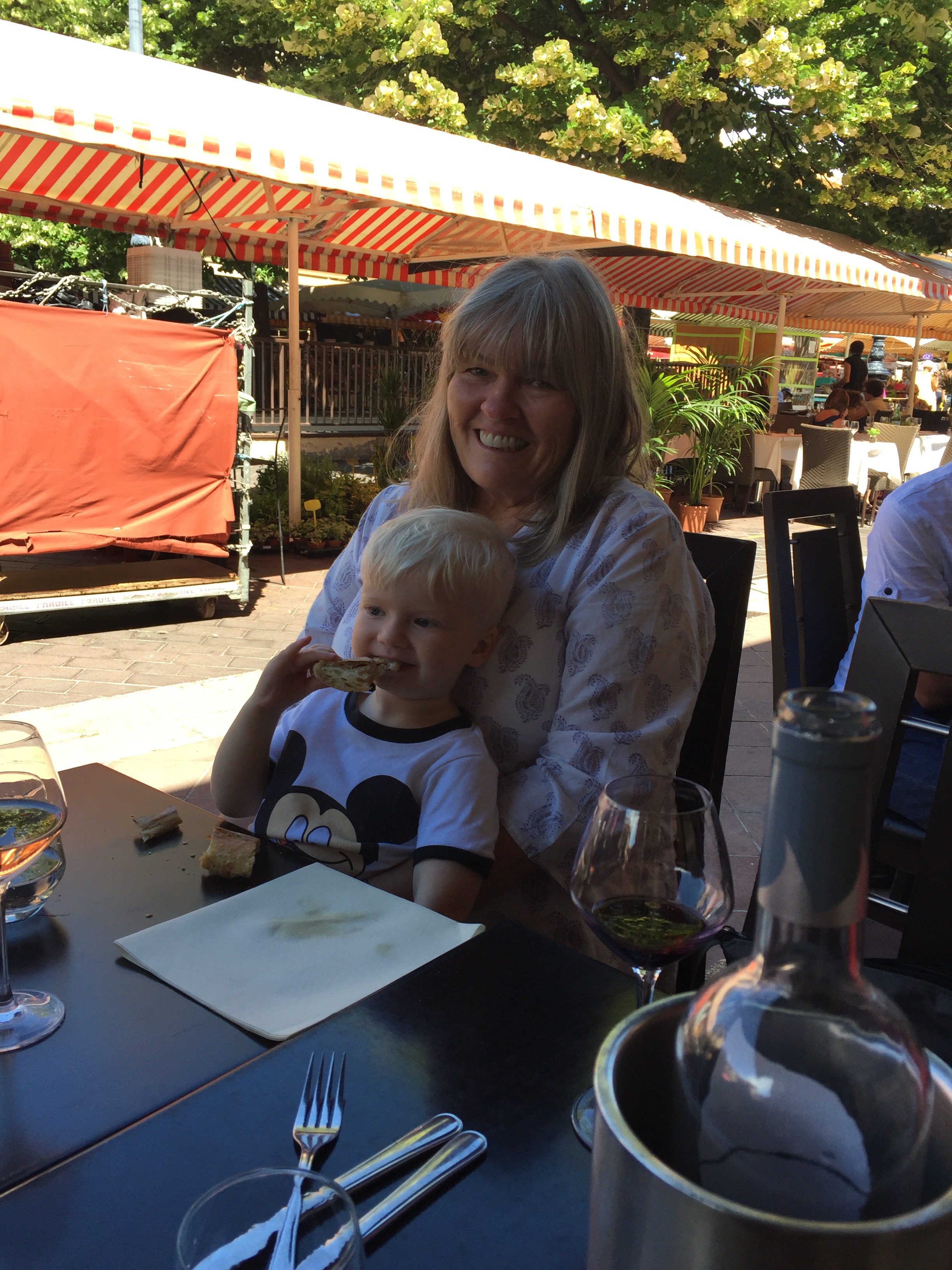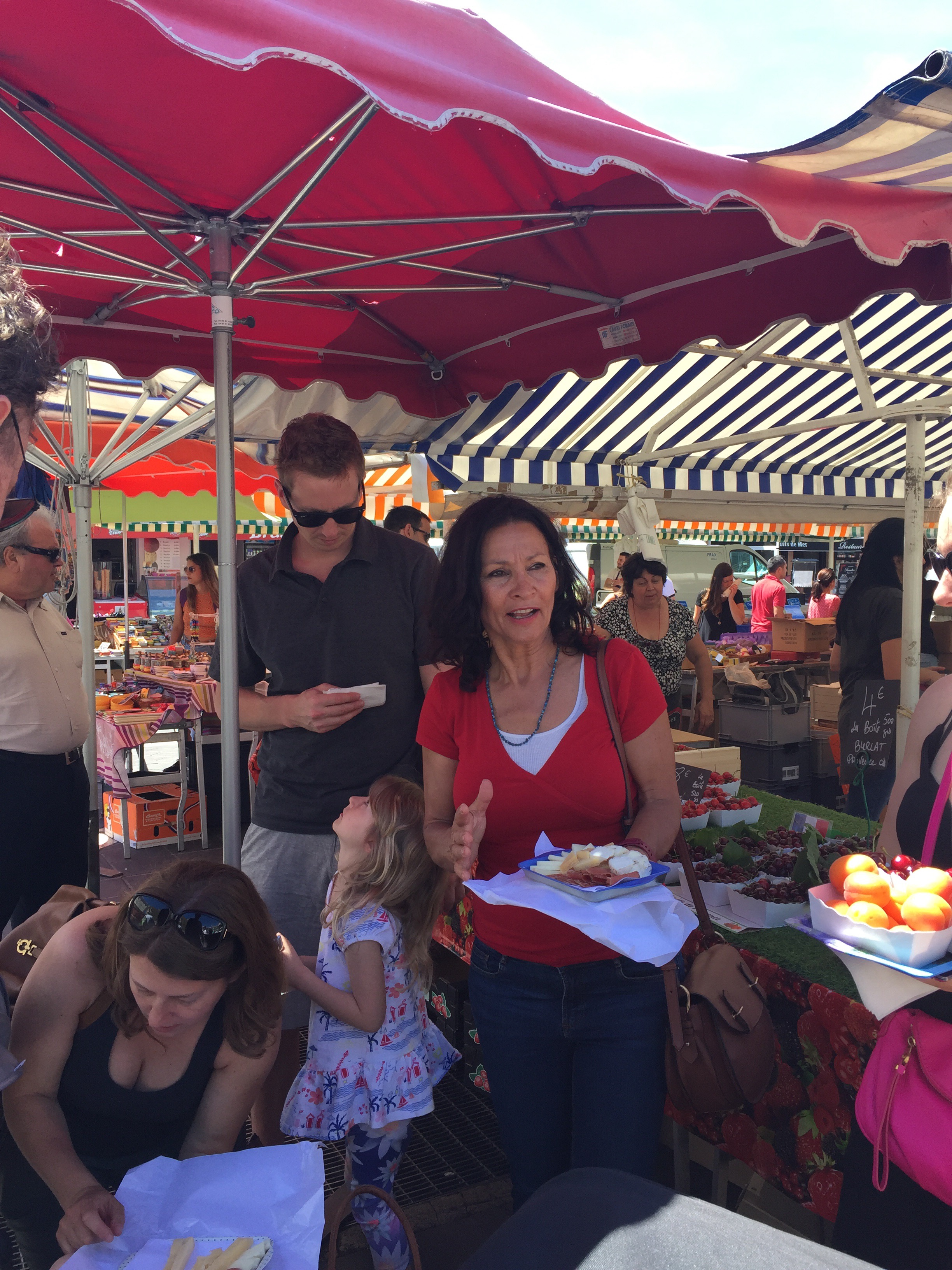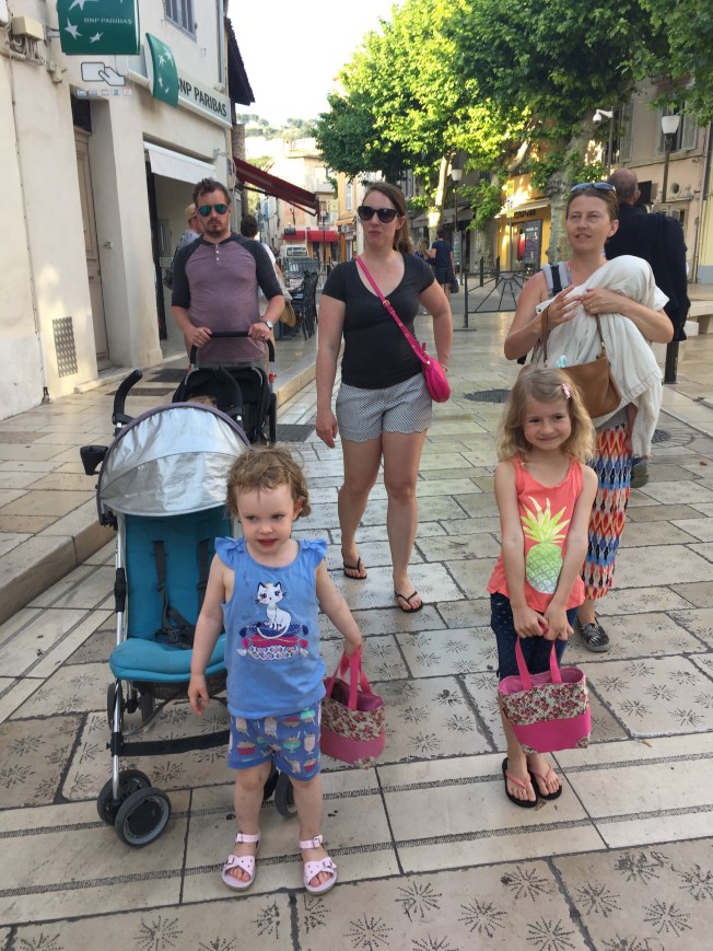 Last year, my children asked me to set aside May 18 to June 1st, 2017 for a surprise 65th birthday trip. Amazingly, the surprise was kept right until check in at the airport! To add to the surprise factor, was seeing Jenn and her family at check in!! We had a veritable party assembled. The Magic begins ….. Destination … Southern France …. the luminous Côte d’Azur! A long day of travel ensued, including a hurried Pret a Manger food stop at Heathrow! They serve the tastiest healthiest airport food ever!! A short connector flight to Nice and we were in business!! A bit of a scramble followed, picking up cars, children’s car seats, with valiant attempts by the guys to stuff our waaaay too many large bags into these vehicles and find room for the humans as well 🙂 …. somehow a miracle happened and we all fit!!! …. Not one of us obviously pays much heed to travel guru Rick Steve’s advice …. simplify your needs … carry on bags only! I should have taken a picture of the lot of us and our stash … it was a sight to behold! Off we drove to navigate our way from the airport to our villa somewhere in the hills of Nice! We arrived very late to our rather sprawling first Airbnb home, our first stop on the Côte d’Azur adventure. Tim and Liseanne had kindly gone out early in the morning, bringing back breakfast fixings for the rest of us! So considerate ❤️ To climitize our minds and bodies to a new time zone, the first order of the day was a walk along the seaside, savouring the turquoise Mediterranean, exploring the ambiance of Nice. The fresh sea air felt heavenly! Sarah had organized a street food tour for our second day, complete with a fabulous outdoor market! Nadia was as cheerful a host as one could possibly wish for … she had a rather persistent smile. She introduced us to local delicacies, such as pissaladière, my personal favourite – a pizza but not exactly … more a tart topped with onion, anchovies and olives, ratatouille which originated in Nice, petits farcis – a classic Niçoise specialty takes vegetables such as eggplant, tomatoes and zucchini and stuffs them with ground meat, garlic and bread crumbs and can be served hot or cold, various different breads, sweet rolls, cheese, pestos and tapenades, crisp local Rose wines .. a classic accompaniment, we were told, with every summer meal in Nice. We all concurred and followed suite with local customs :)!!! Did I mention gelato?! A daily stop encouraged by our four little folk …. big folk did not complain :). We all passed on the local cheap wine poured from large barrels into Evian water bottles … we politely sipped the sampler but quickly chucked it discreetly into the garbage when Nadia’s back was turned …. this remained our only unanimous reject 😙 The food tour finale was a sampling of local Rose served up with a tasty platter of the various appetizers! A fine start to our culinary explorations of Southern France …. à votre santé!