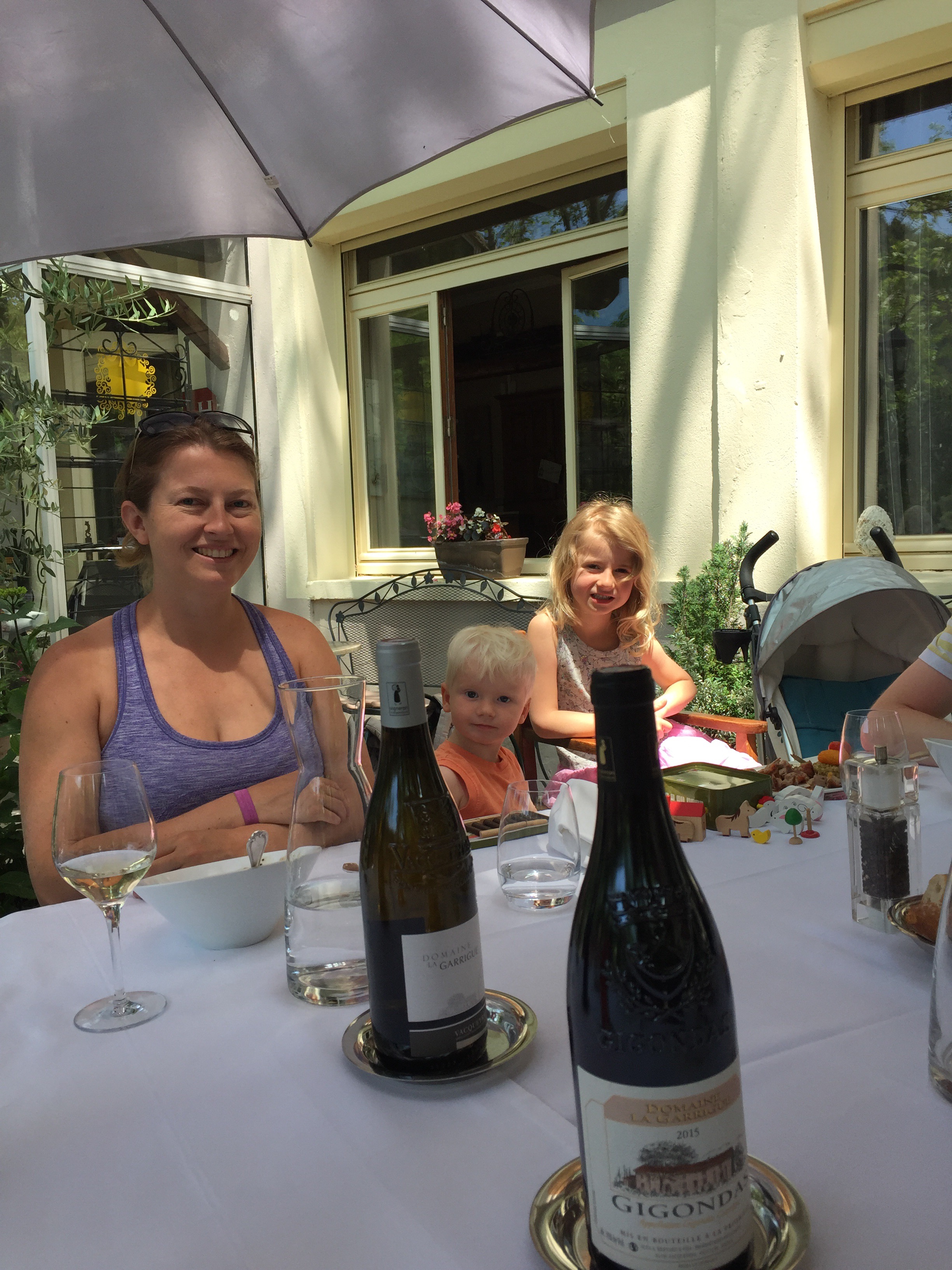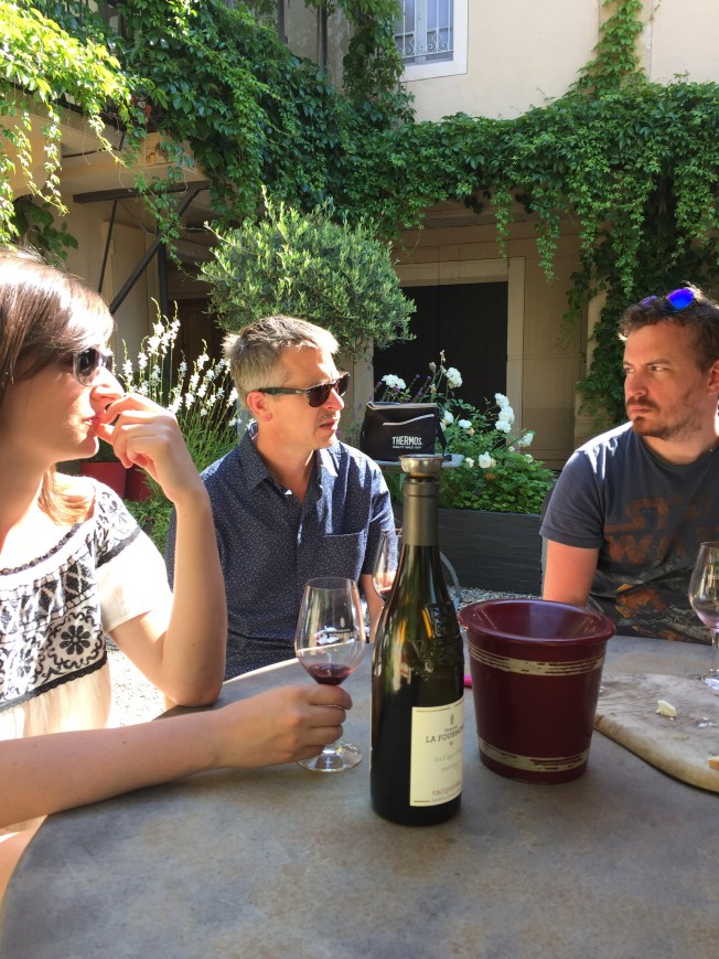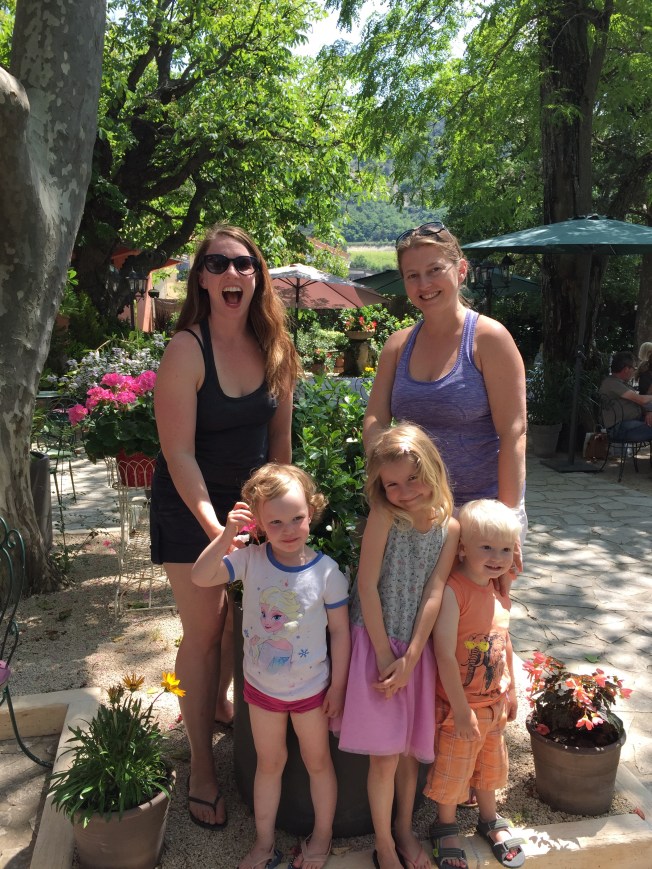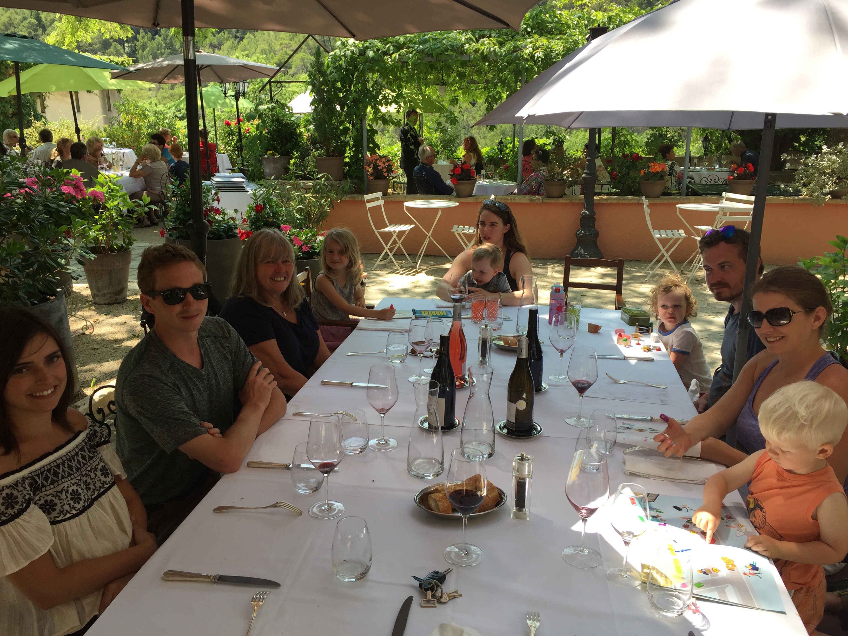 A wine tour with Olivier through parts of the Rhone Valley proved to be a totally interesting, informative and fun day. Olivier, of both French and English heritage is totally bilingual … the British side prevailed. A delightful man, full of knowledge, and funny to boot. We sampled our way through various vineyards …. white and rose Vacqueyras, red Gigondas, red Côte du Rhone, red and white Chateauneuf-du-Pape and various other wines that I have forgotten :). We learned the importance of ‘terroir’ …. weather, wind, soil type, and a myriad of other conditions and situations that influence and determine the quality and taste of a wine. The day culminated in a delicious late day luncheon at a restaurant located in the unbelievably bucolic tranquil countryside. Again, we lingered long, savouring the day. As I sit here today, in a cafe in Kelowna, typing this, my thoughts and mind easily float back to France. I feel so blessed to have had this experience with my children, their partners, my grandchildren, Jenn, Gary and their children … How kind and thoughtful they all were to arrange all this. It is not easy planning and carrying out an overseas trip for adults, never mind one with young children to consider …. a Herculean effort surely and one that succeeded brilliantly.