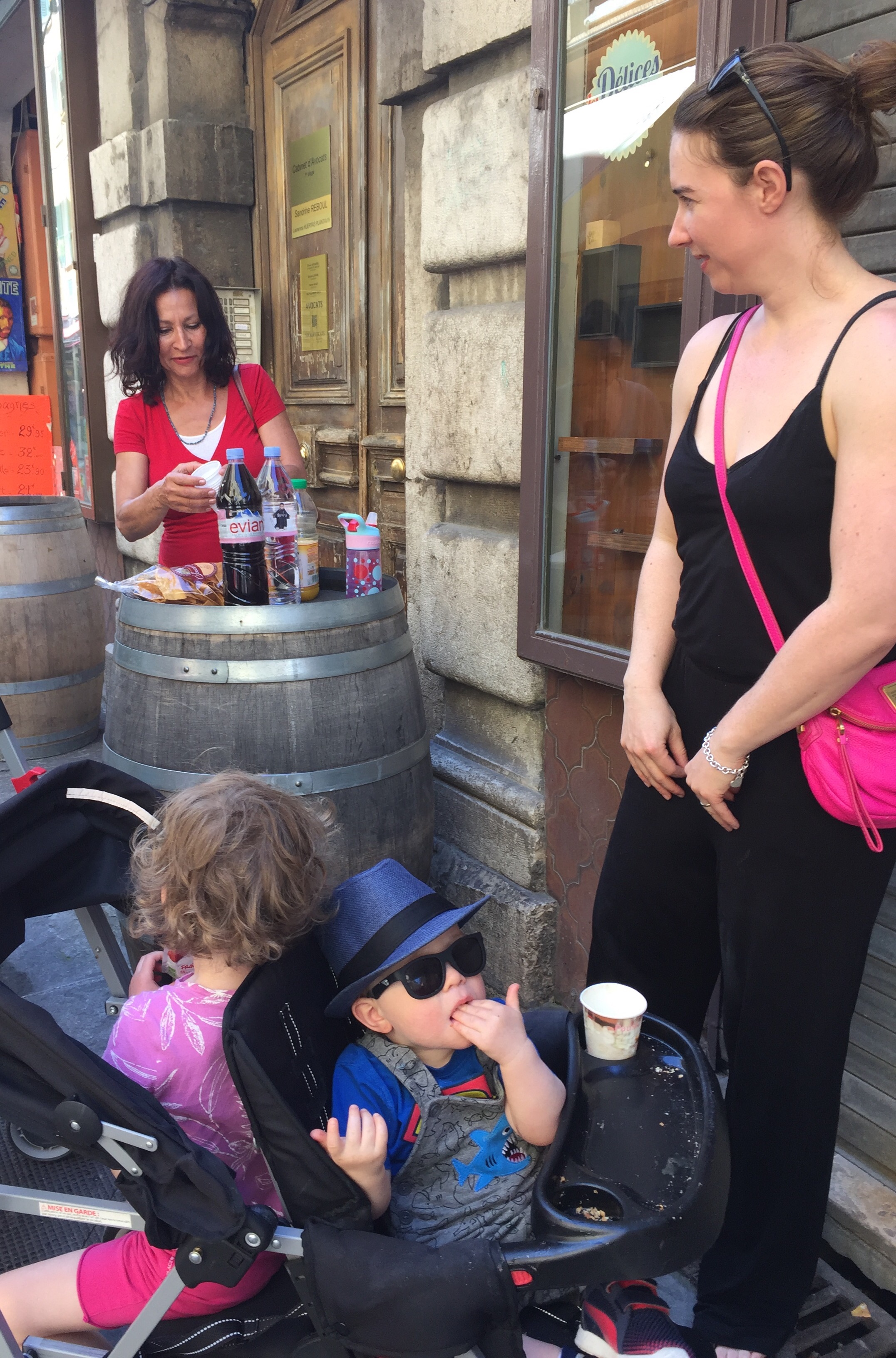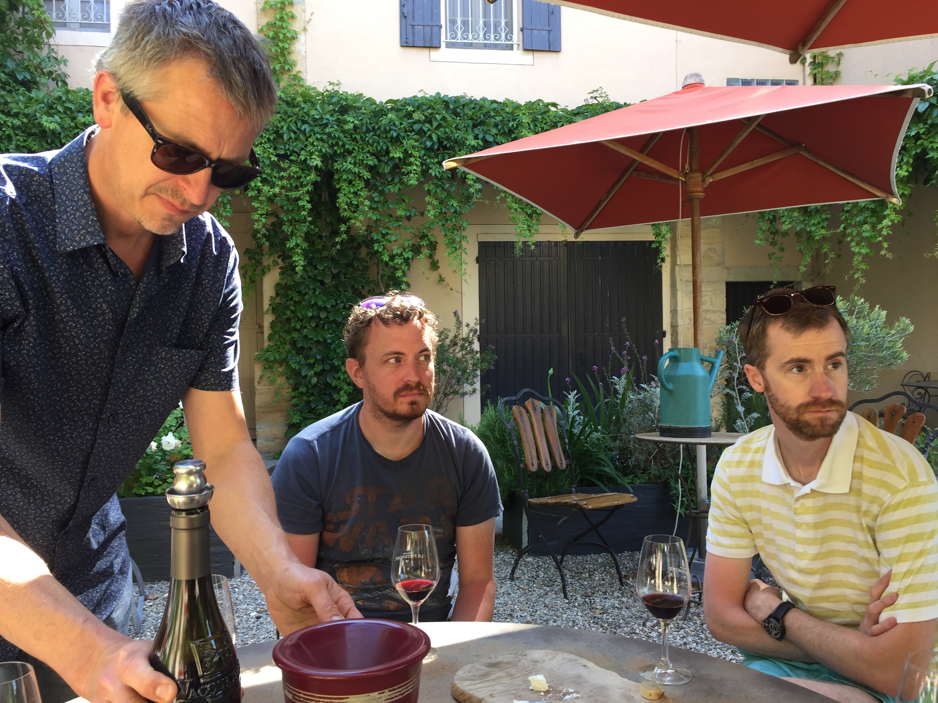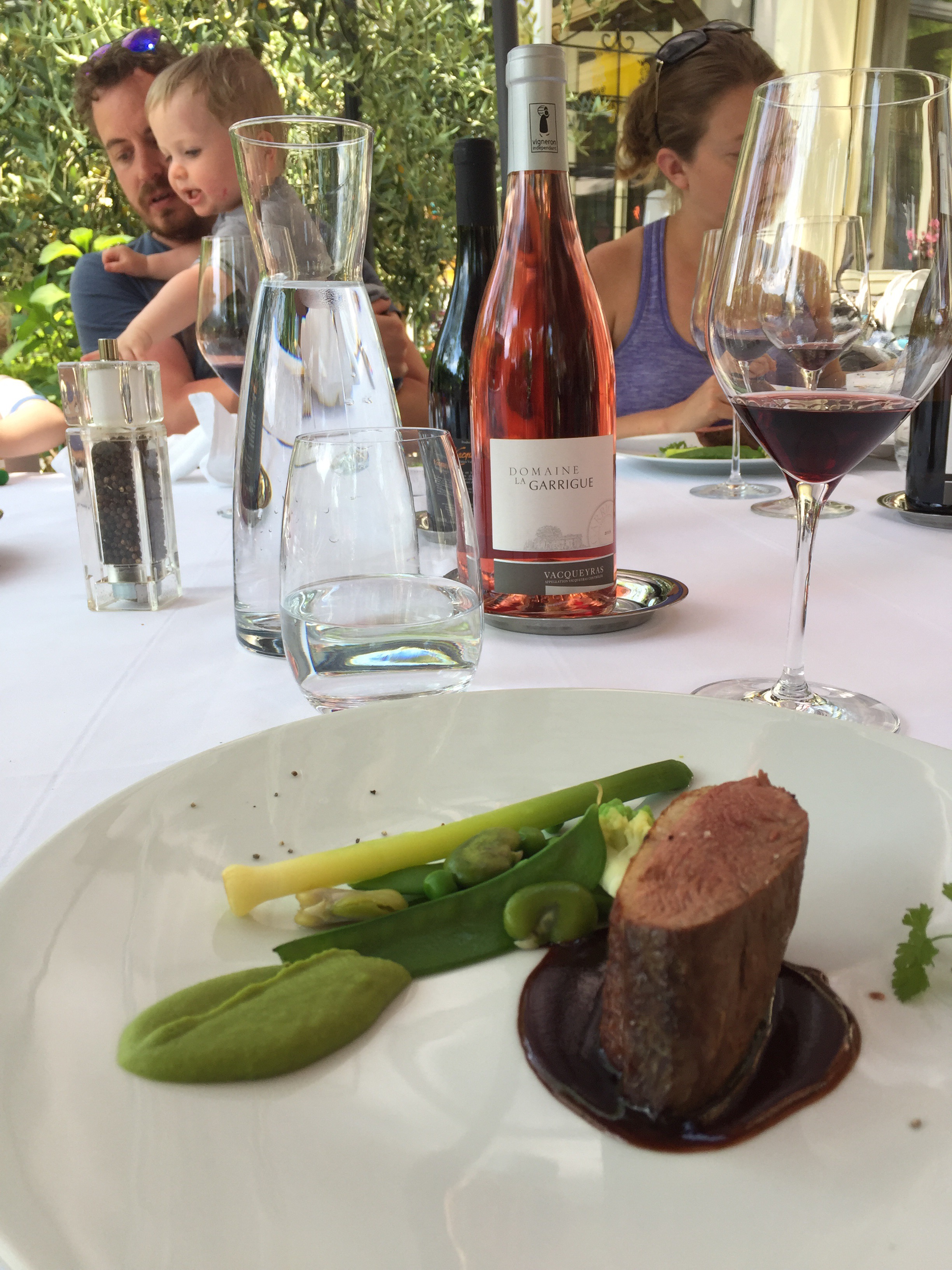 A wine tour with Olivier through parts of the Rhone Valley proved to be a totally interesting, informative and fun day. Olivier, of both French and English heritage is totally bilingual … the British side prevailed. A delightful man, full of knowledge, and funny to boot. We sampled our way through various vineyards …. white and rose Vacqueyras, red Gigondas, red Côte du Rhone, red and white Chateauneuf-du-Pape and various other wines that I have forgotten :). We learned the importance of ‘terroir’ …. weather, wind, soil type, and a myriad of other conditions and situations that influence and determine the quality and taste of a wine. The day culminated in a delicious late day luncheon at a restaurant located in the unbelievably bucolic tranquil countryside. Again, we lingered long, savouring the day. As I sit here today, in a cafe in Kelowna, typing this, my thoughts and mind easily float back to France. I feel so blessed to have had this experience with my children, their partners, my grandchildren, Jenn, Gary and their children … How kind and thoughtful they all were to arrange all this. It is not easy planning and carrying out an overseas trip for adults, never mind one with young children to consider …. a Herculean effort surely and one that succeeded brilliantly.