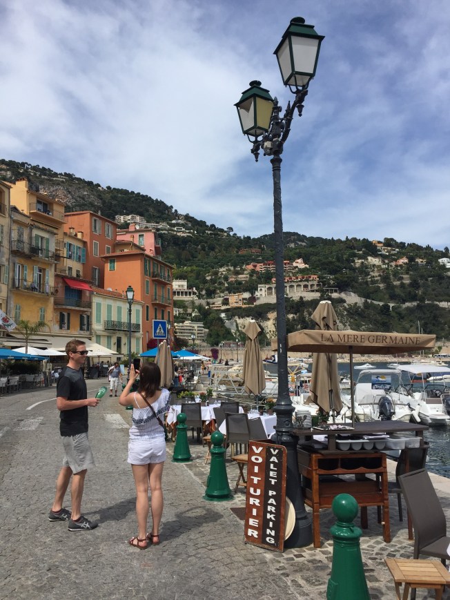 Villefranche Sur Mer has a special atmosphere with the warmth and charm of a small fishing village from a bygone era, allowing for a pleasant slower pace of life. We had planned to tie up with the others in this village but they were leaving just as we arrived …. we had lingered longer than planned in Monaco! The little ones had apparently had quite enough car and restauarant time at that point and were antsy to head back to play at the villa :)! Tim, Liseanne and I opted for a quiet seaside dinner in Villefranche before hitting the freeway craziness back to Nice. I remain impressed with Tim’s handling of the French road system without the aid of GPS. Liseanne admirably handles the manual navigating with very few blips … Rob and Gary did admirably as well and despite using GPS, it still required vigilance and help from their trusty navigators, Sarah and Jenn! All in all, I was thrilled to have the back seat in this regard … my sense of direction or rather lack thereof, would have found us going in circles 🙂