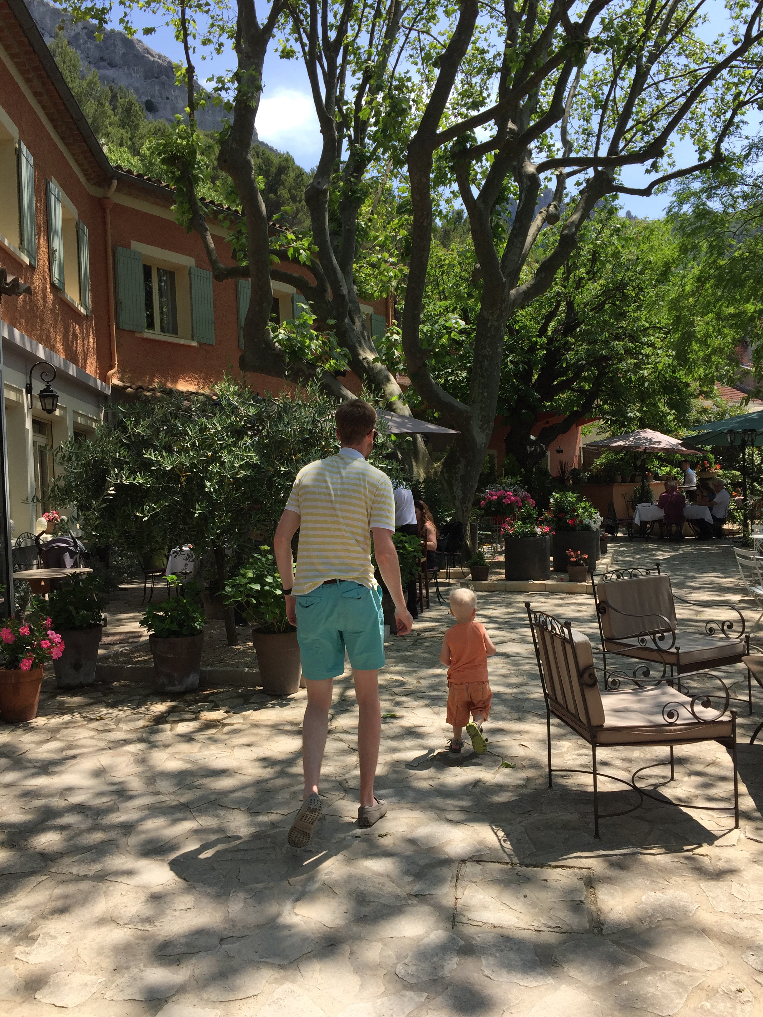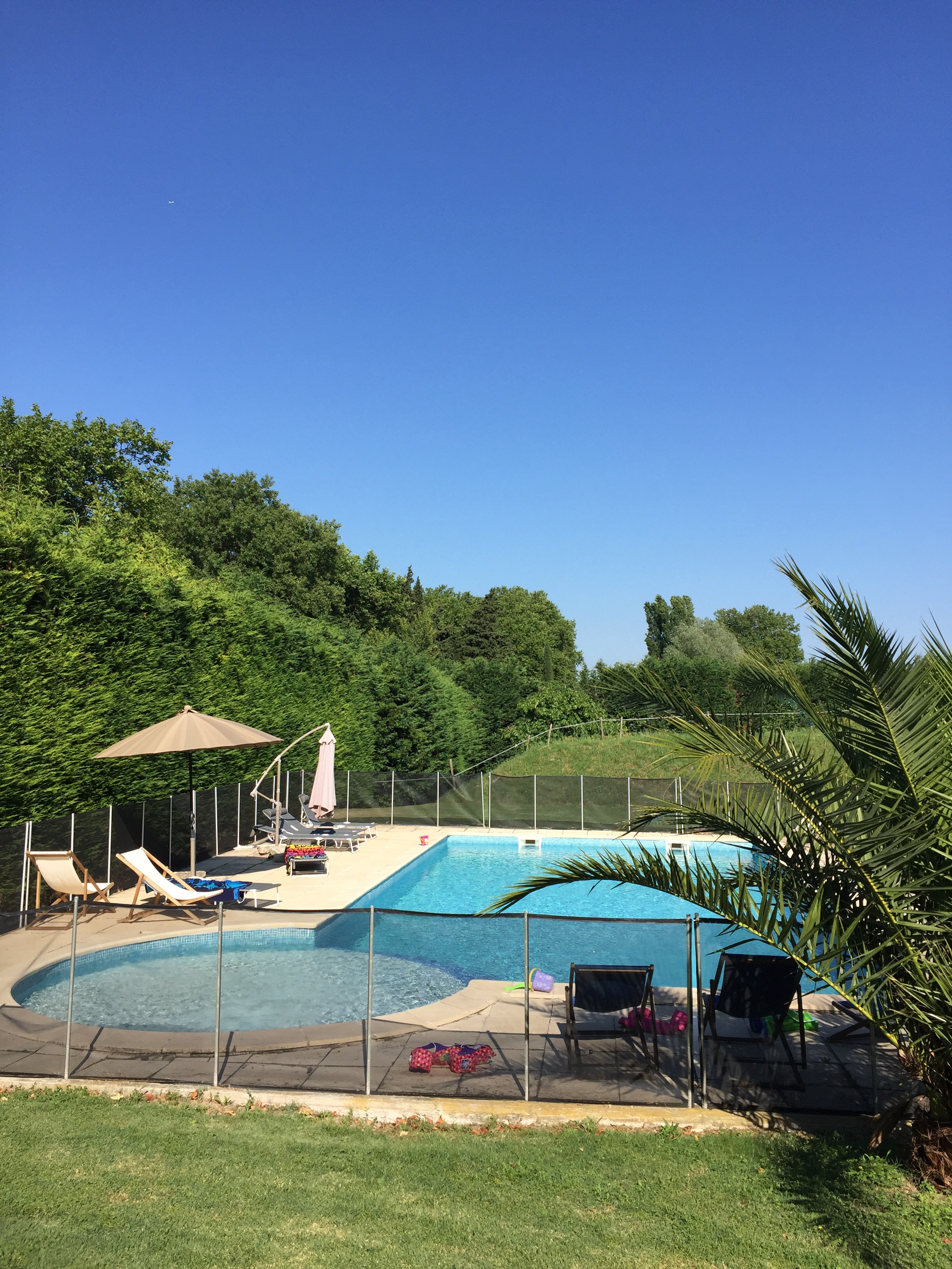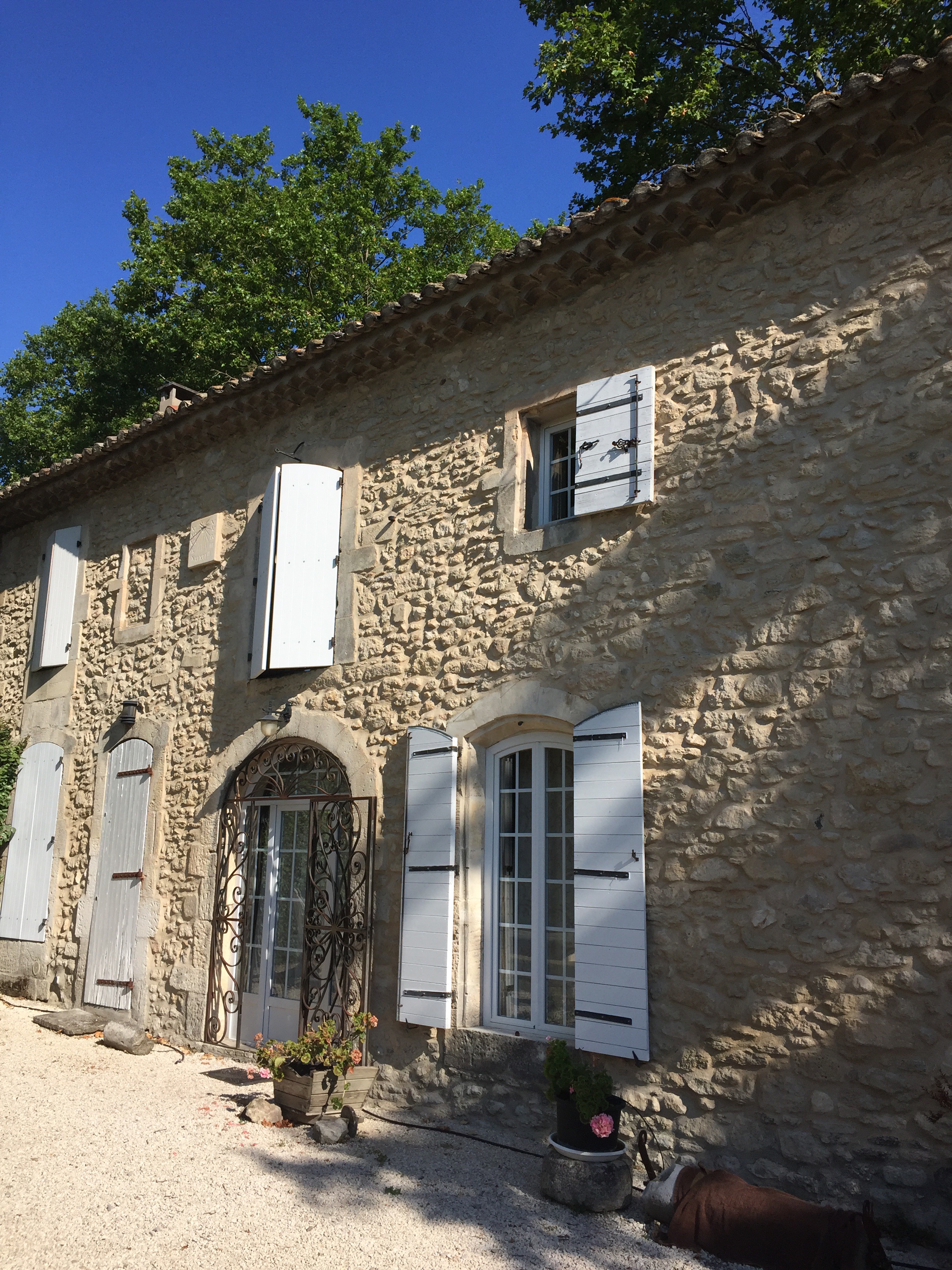 We bid au’revoir to seaside Cassis and the Mediterranean and hit the inland freeways, where cruising speeds of 140 – 160 are the norm …. toll stations appear to be part of every road network, thus far, ranging from a few Euro per use to well over twenty … beautiful roads but costly to drive! We arrive at our next destination, a converted farmhouse in San Remy …. a touch of tranquility in Provence! A place to stretch out, chill, swim, let the kids, big and small kick a soccer ball around the acres of grass, jump on a trampoline, explore a quaint town teeming with restaurants and the many nearby vineyards and oh yes, give everyone a chance to do laundry as well 🙂 ….