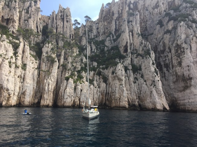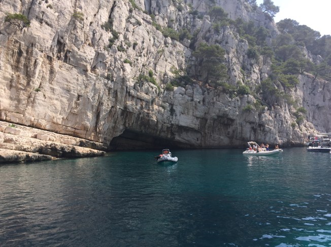 Tim, Liseanne and I took in a boat excursion on our last day in Cassis to view the Calanques up close …. unbelievable formations and a view up close that was not possible hiking from above …. the Calanques of Cassis are a unique geological formation usually comprised of limestone or granite, made up of deep, narrow valleys with sharp edges, partly submerged in the sea … the shapes apparently bear resemblance to those of the Norwegian fjords.