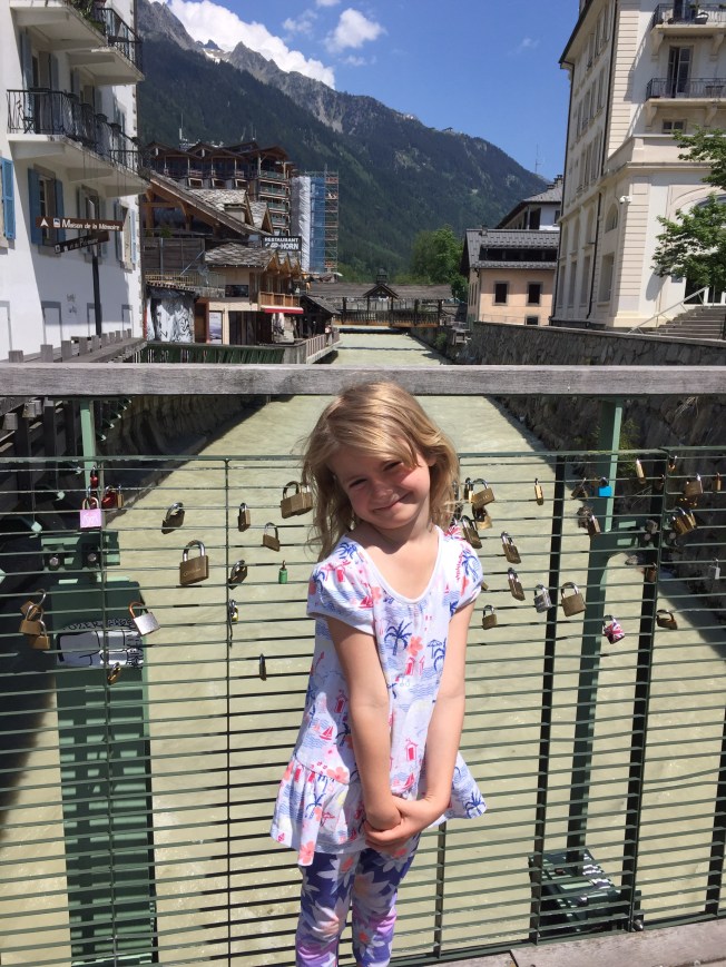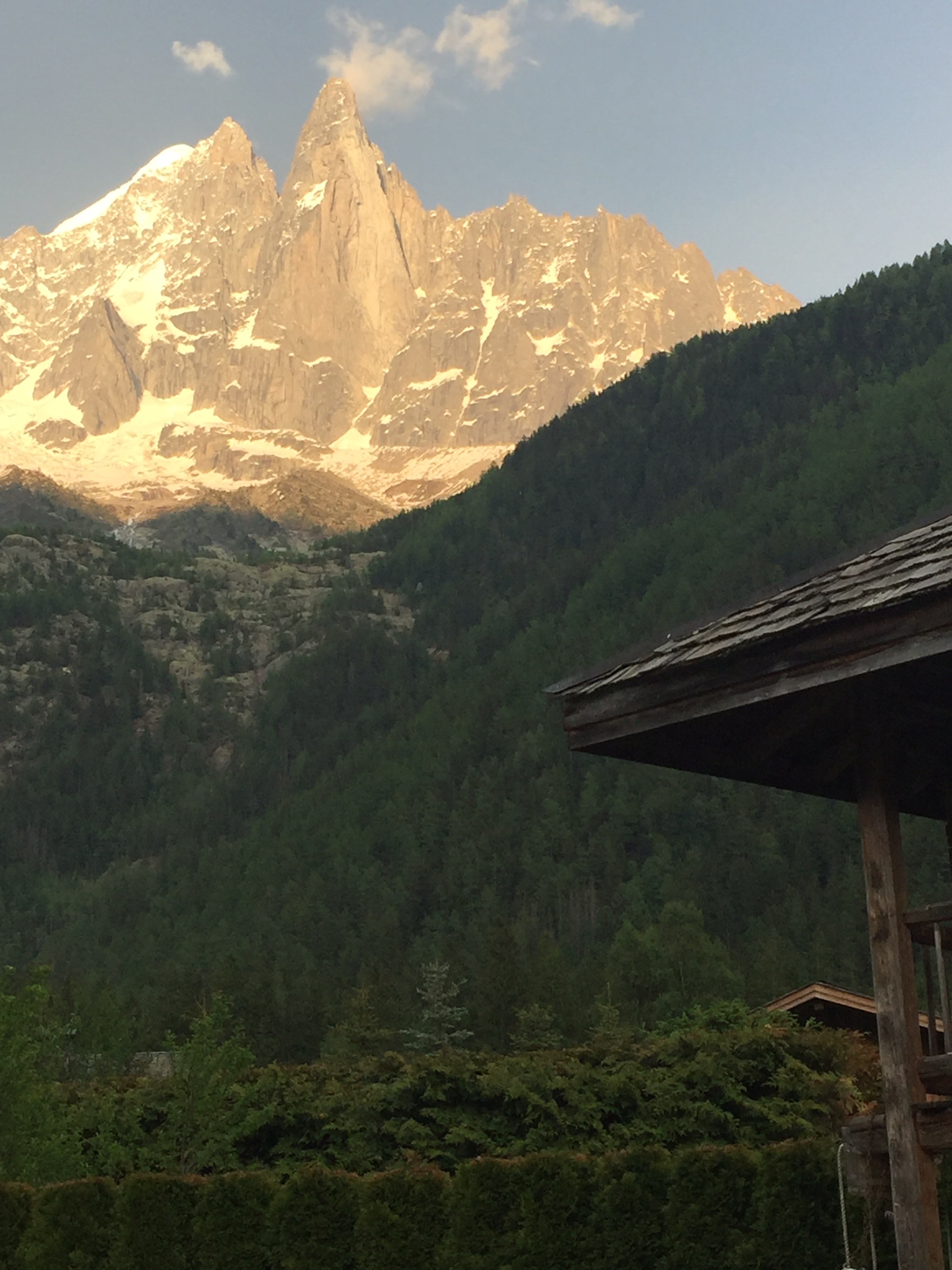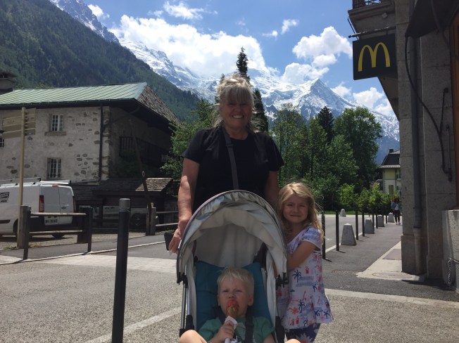 The final leg of my birthday extravaganza found us entrenched in freeway traffic for seven hours! National holiday week, Cannes Film Festival and the Grand Prix all major contributors to the jam! After inching our way on freeways, all the while being charged a king’s ransom in toll fees, we finally arrived in the rather lovely mountain village of Chamonix. Summer crowds had not yet materialized leaving the town pretty much to ourselves. Only a handful of tourists and the hearty hiker crowd in town! Decades ago, Brian and I had flown there from Kuwait, to meet up with my eldest sister Pirjo and her husband Bill for a ski week! The memories were overwhelming and poignant. We were two then, just really starting out on our married lives, 25 and 27! I return with two children, their partners and two grandchildren … ‘we’ had grown from two to eight! Memories flooded my heart and mind … I had many tearful moments as I walked the back roads in the early morning mist that first day! The memories of a long ago Chamonix, coated in winter’s snowy landscape was replaced by the stillness of a mountain sunrise and a field of wild flowers, reminiscent of a Claude Monet painting.