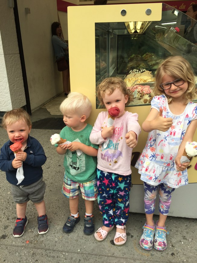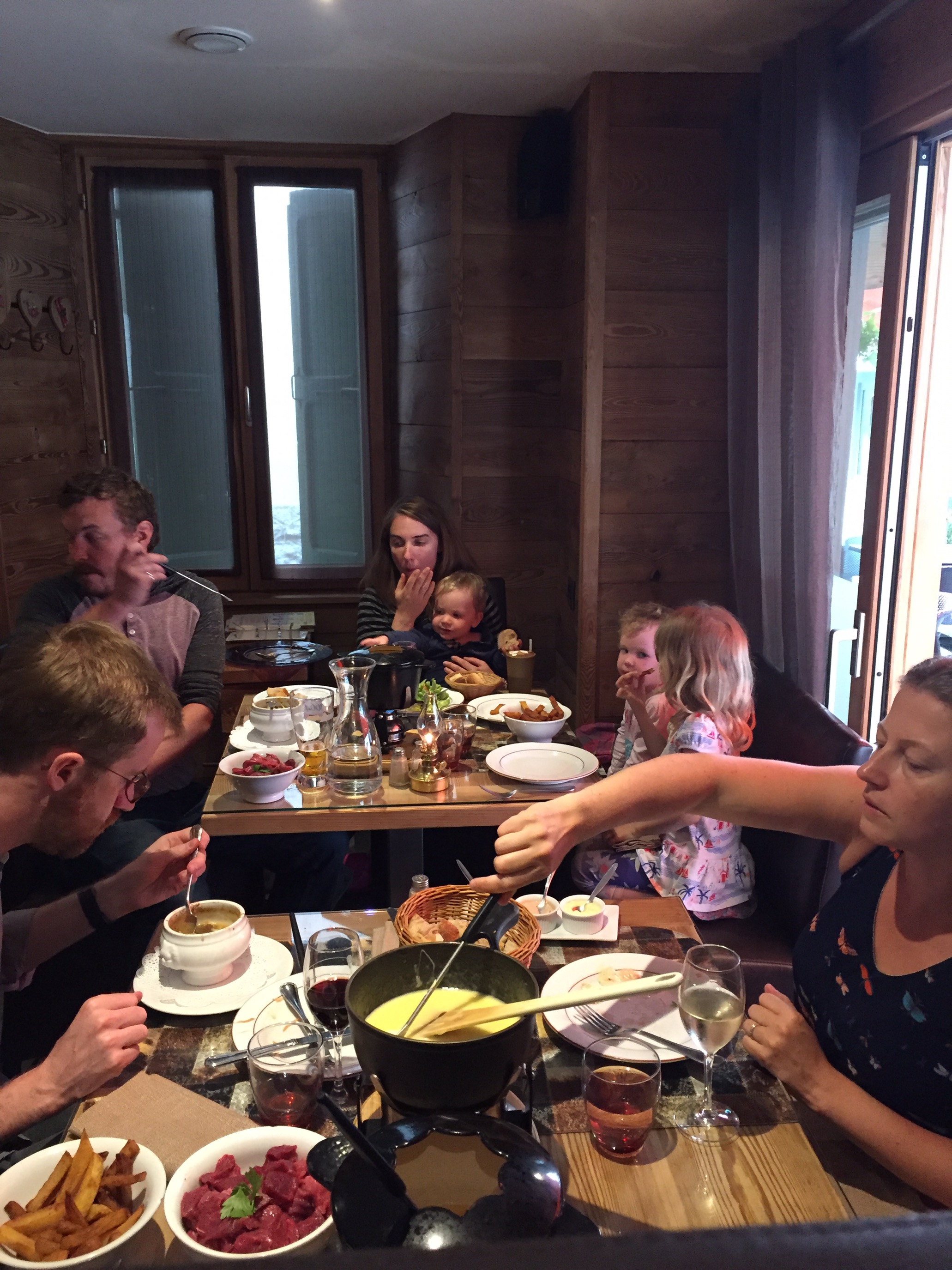 A final evening fondue was in order as we bid adieu to Chamonix … finished off with, what else??? Gelato for the children 🙂