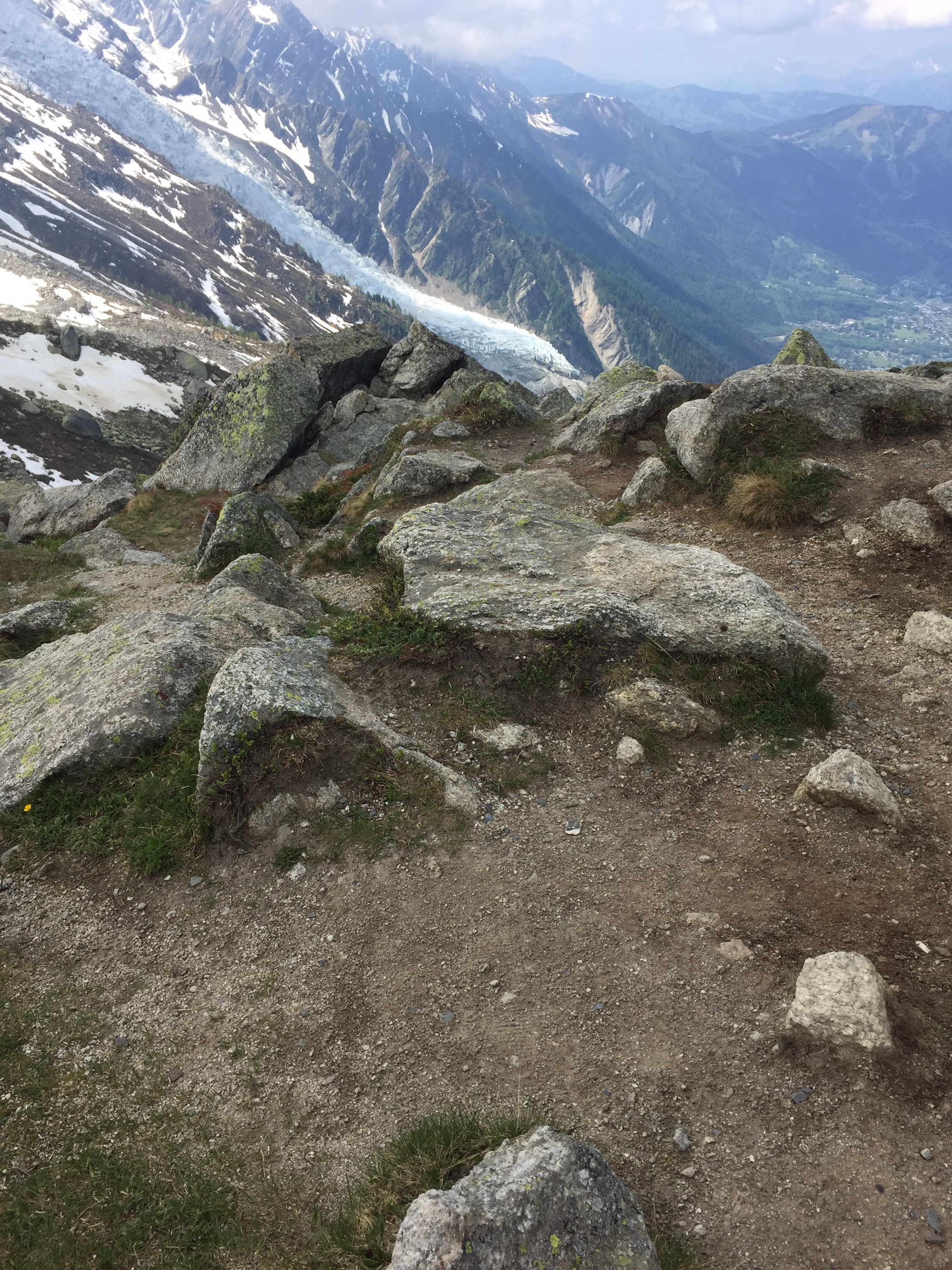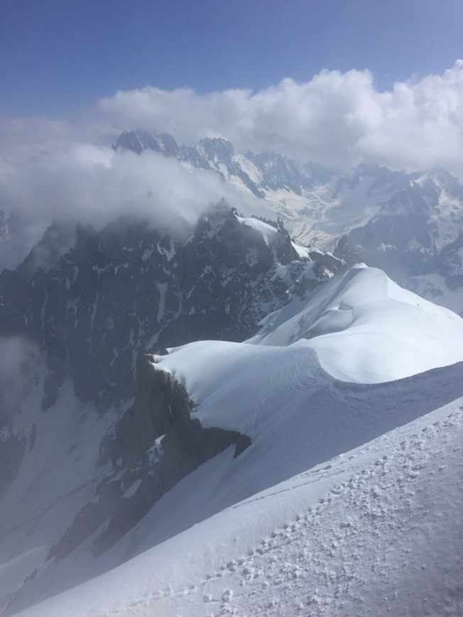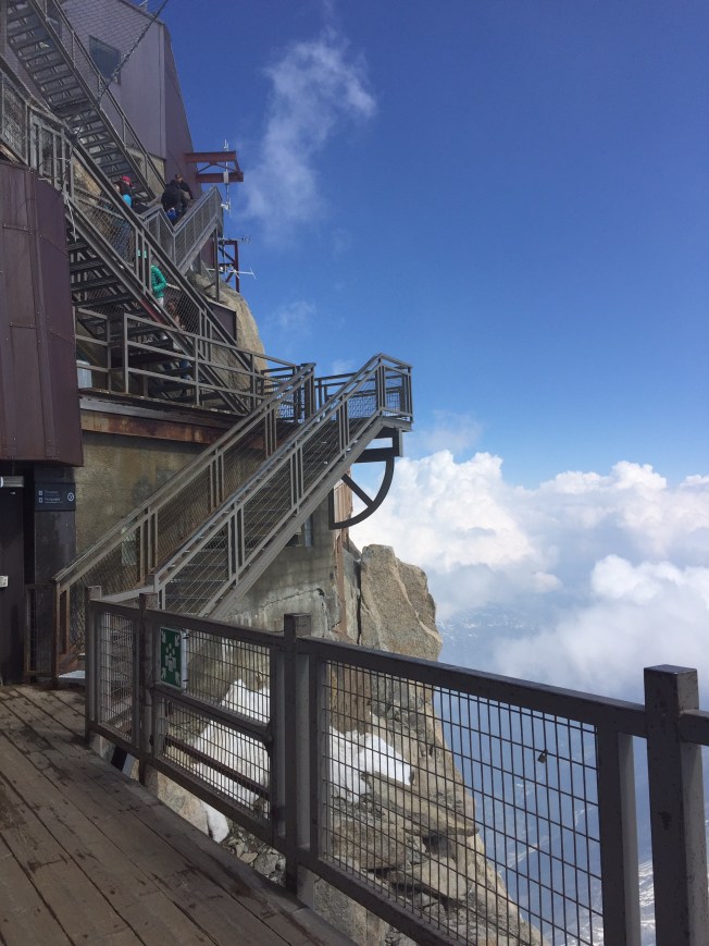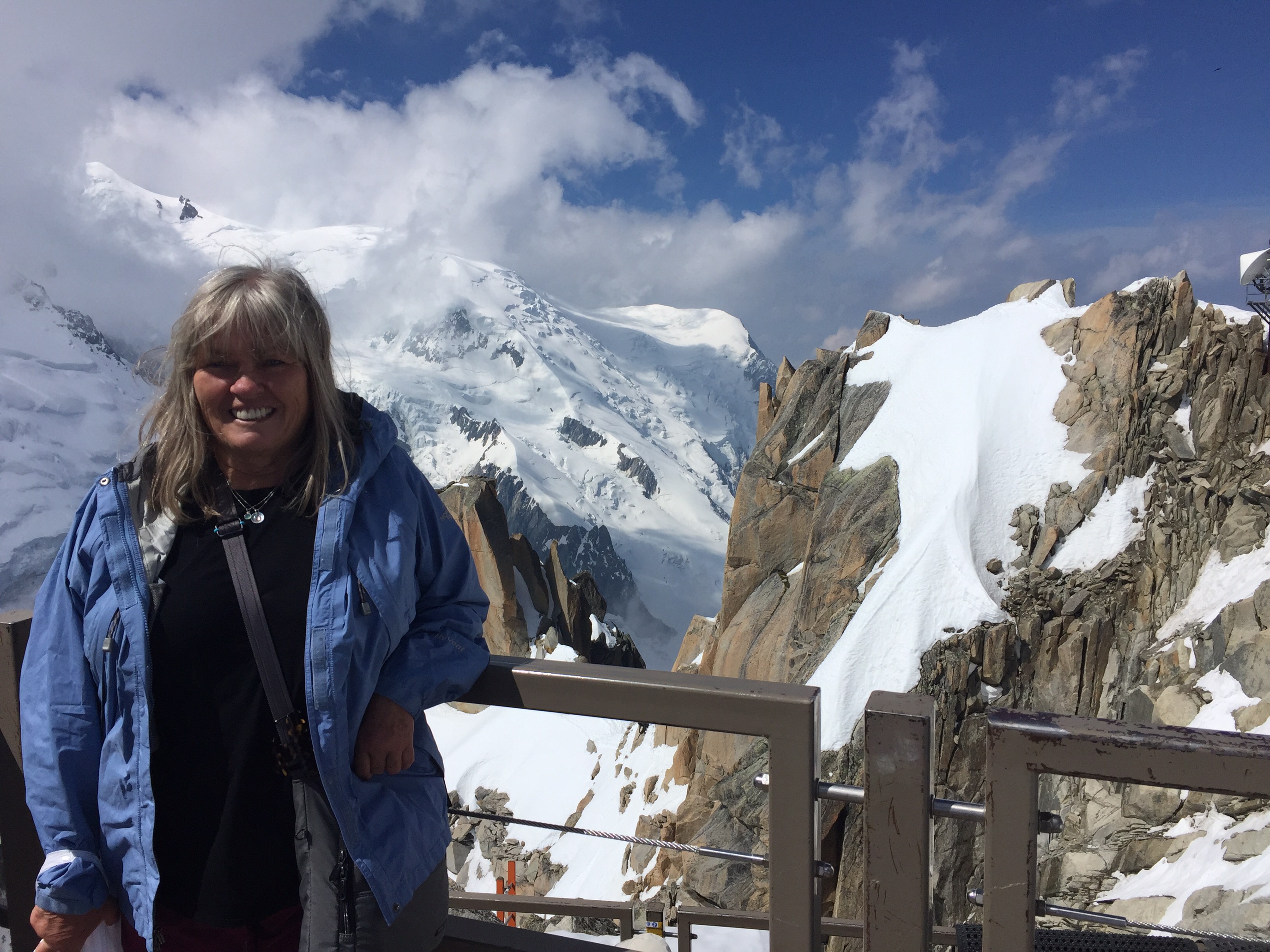 We all took turns with the various activities available in Chamonix … hikes without youngsters, hikes with them, (all of us taking a turn with childcare), even a day of shopping in town for hiking boots for some 🙂 or a Gondola trip to the dizzying heights of 12,000 feet for others. Brian skied down this same hill above the clouds forty years ago! My sister Pirjo and I, being rather ummmm, tentative skiers at the time, had opted to stay on the lower slopes :). Somewhere in a dusty faded photo album, I will find those pictures of that long ago time in our personal history. I loved it at the top …. feeling cradled in the heart of a mountain. I was loathe to leave, wanting yet again to linger longer.