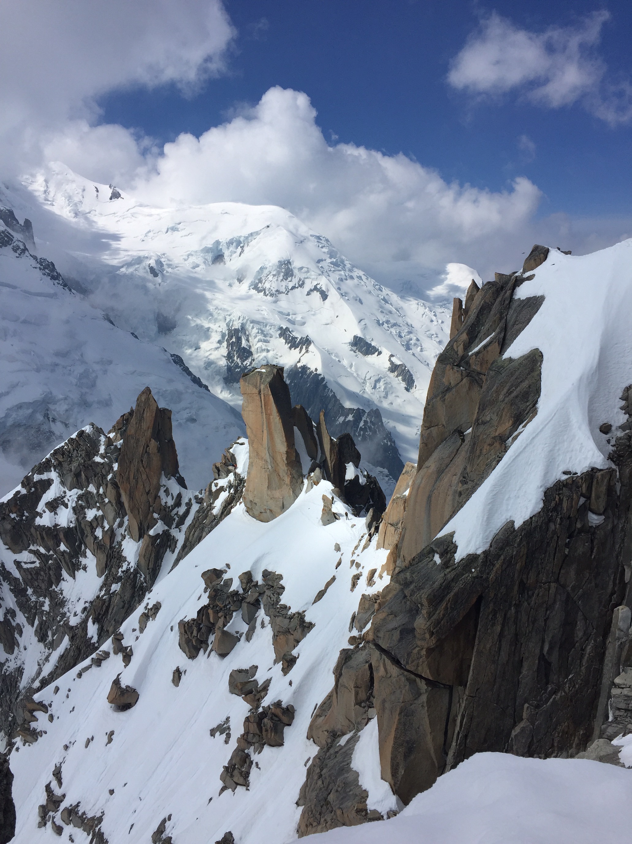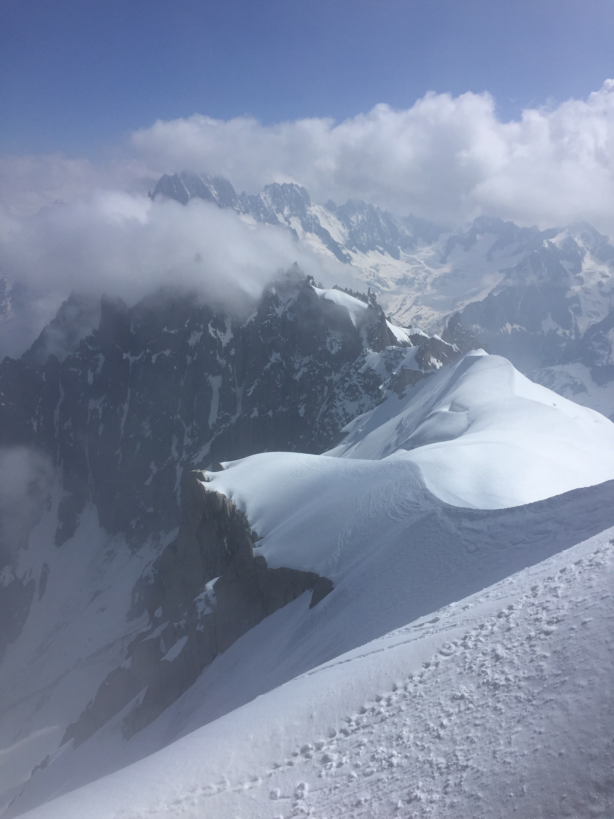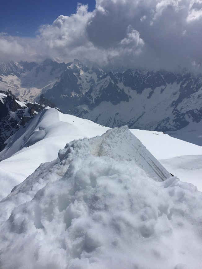 We all took turns with the various activities available in Chamonix … hikes without youngsters, hikes with them, (all of us taking a turn with childcare), even a day of shopping in town for hiking boots for some 🙂 or a Gondola trip to the dizzying heights of 12,000 feet for others. Brian skied down this same hill above the clouds forty years ago! My sister Pirjo and I, being rather ummmm, tentative skiers at the time, had opted to stay on the lower slopes :). Somewhere in a dusty faded photo album, I will find those pictures of that long ago time in our personal history. I loved it at the top …. feeling cradled in the heart of a mountain. I was loathe to leave, wanting yet again to linger longer.