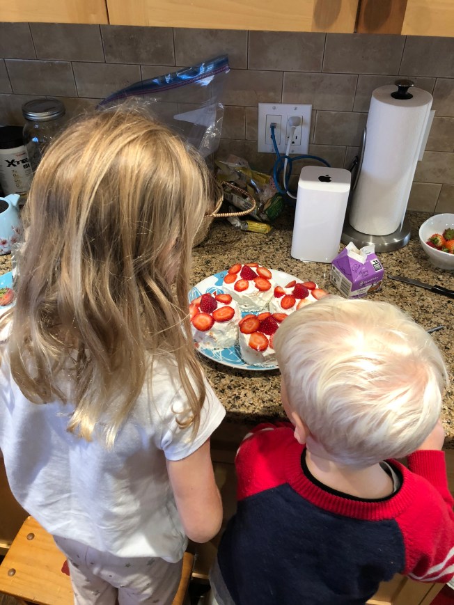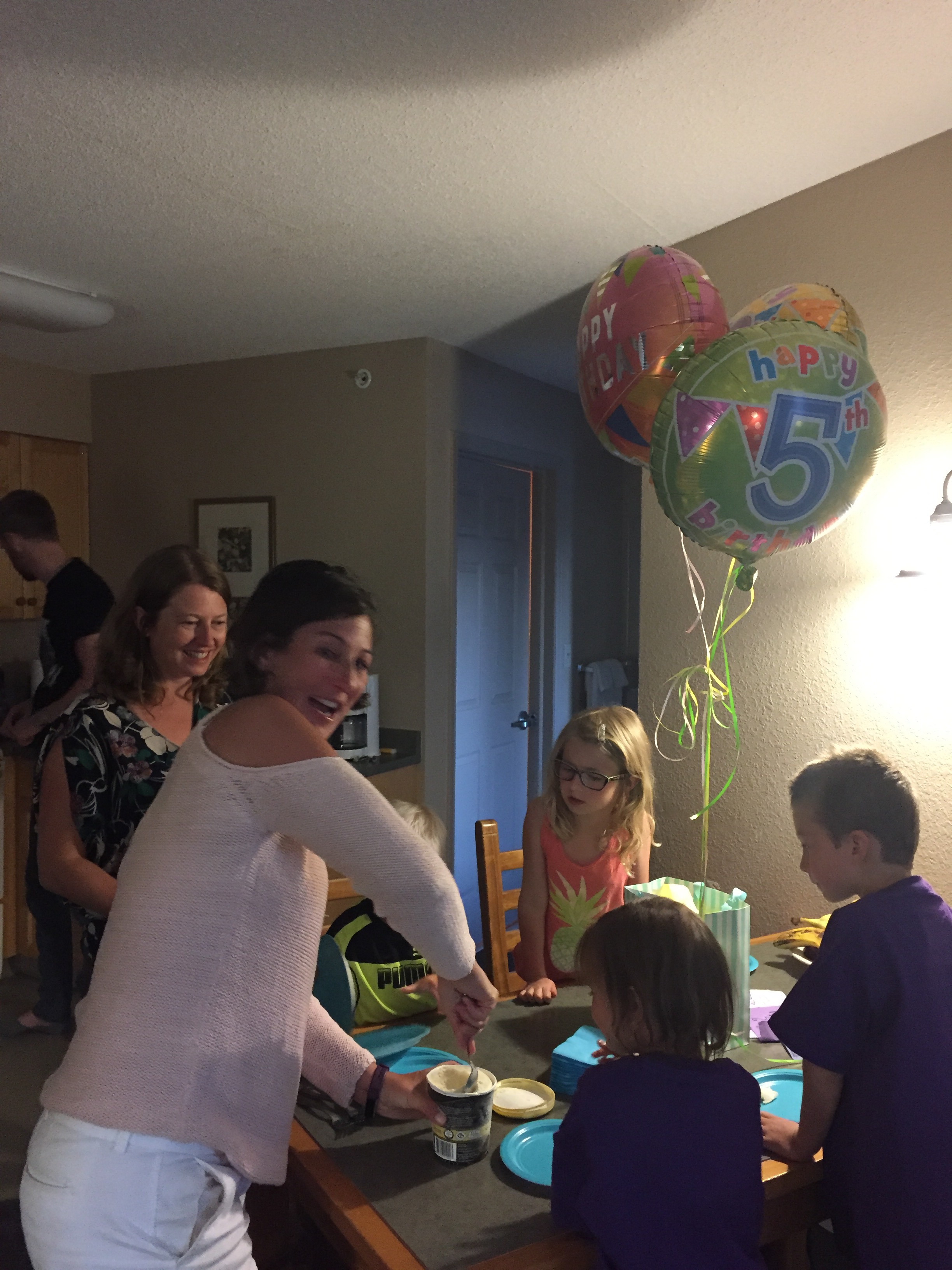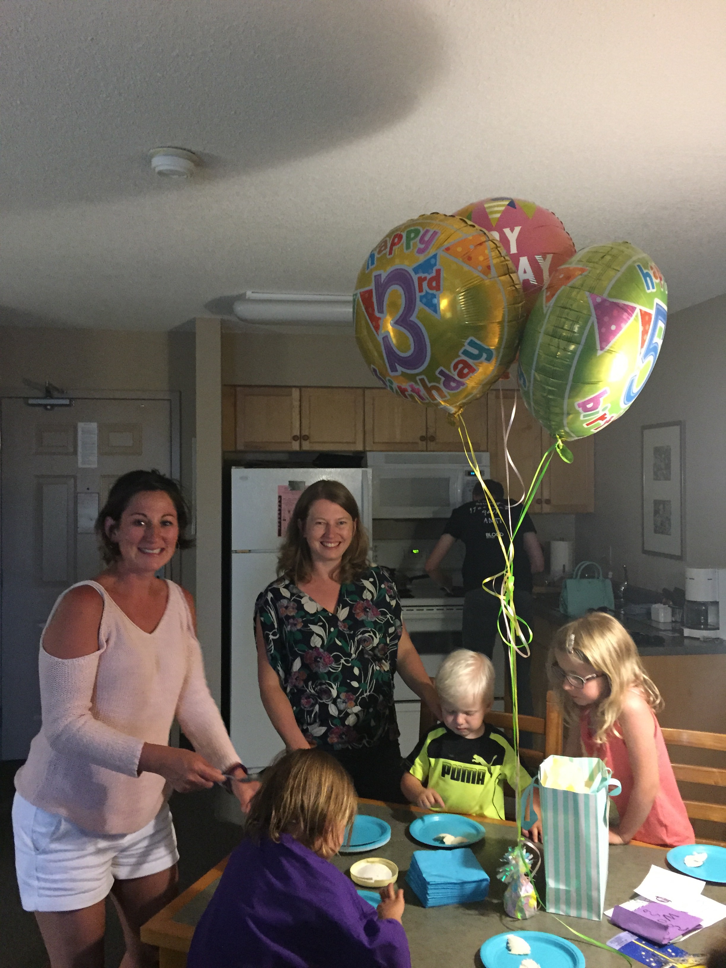 The little ones were excited to surprise Sarah with birthday balloons, pie and ice cream! I had a hard time finding 35 on a single balloon …. a 3 and 5 balloon worked!