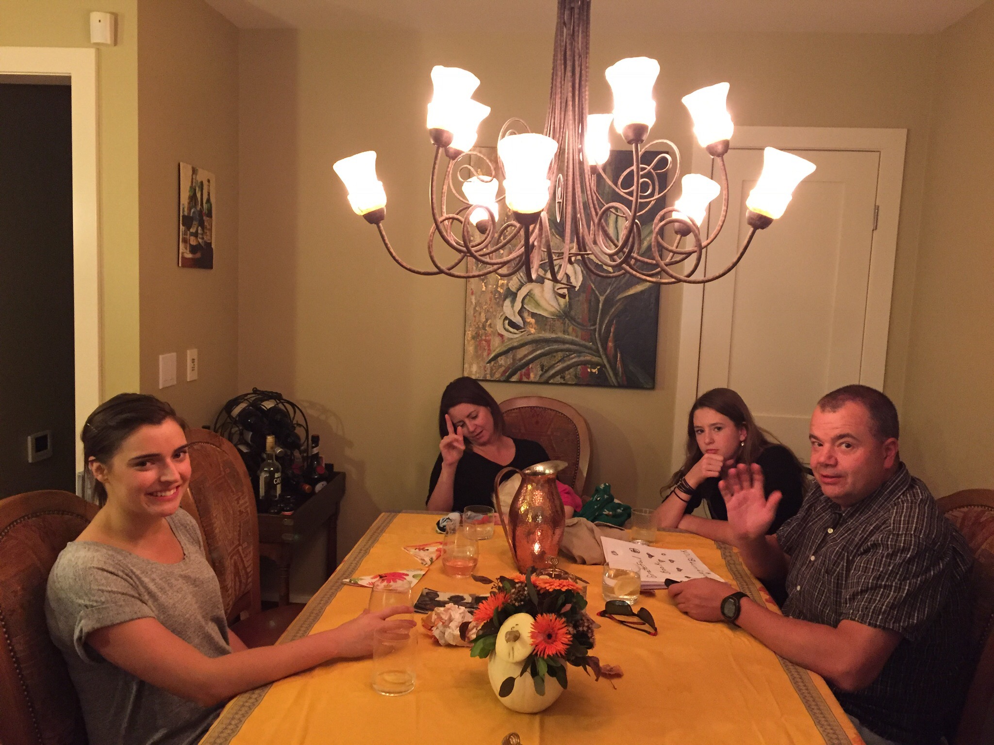 Age certainly allows for a broader perspective on the emotionally charged Christmas family holiday! I flash back to all the hoopla I was so pulled into as a young mom of two children in the 80’s, 90’s, and well into the new millennium!!! Christmas was often way over the top …. a month of creating a festive atmosphere, functions, concerts, plays, gifts …. oh far far too many gifts!! Memory takes me back to my own humble childhood …. Christmas Eve saunas for everyone, proceeded by the delicious Finnish ”Kalakukko” … an oval loaf of rye bread with a pork and fish filling … a delicious bread cocoon with pork, fish and pototoes simmering inside for several hours in a low temperature oven … this was a traditional Christmas Eve meal in Finland that my parents carried with them to Canada … thankfully!! My sisters and I, to this day, remember how much we all savoured our mother’s Kalakukko!! Strange and sad that not one of ‘Aili’s’ six daughters ever learned to bake it! The gift opening that all children relish, was endless hours (or so it seemed to young children) after the early evening meal and when the last family member finally emerged from the sauna! Aaah … beautiful poignant memories. Times have changed …. Nostalgic longings for more simplicity seem to always surface during the Christmas season …. there is little doubt that my children and grandchildren are my joys today and undoubtedly will continue to be, always taking some form of centre stage in my heart … I am attempting to encourage a cabin Christmas somewhere once again for next year … will see … I remind myself I make valiant attempts every year, with little success 🙂 Many years ago, Brian and I organized and hosted our family (Brian’s side of the family chain actually) to three cabin Christmases in Fernie, spaced out over six years … I personally always thoroughly enjoyed them. Will see if we can pull that off next year with my children and their families. Posting some pictures of various Christmas functions from the Webb/Overmann/Hawkes/Cullen/McMechan potluck Christmas gift exchange at Sarah and Rob’s, to Christmas Eve festivities back at Sarah & Rob’s and onward to Christmas Day at my niece and nephew’s place … (Sandra and Bob) … The Webb/Overmann arm of our family had earlier enjoyed our traditional Finnish pancake breakfast on Christmas morning, courtesy of Brian’s talents (something I encouraged my mother to teach Brian to make so very long ago … I thought it wise at the time to bring in the male side of the family into the tradition 😗 … hopefully Brian has taught Tim well ?? ) All were beautiful warm family functions to close off 2016 … onward to a peaceful 2017 🙏