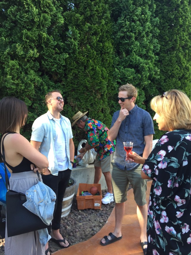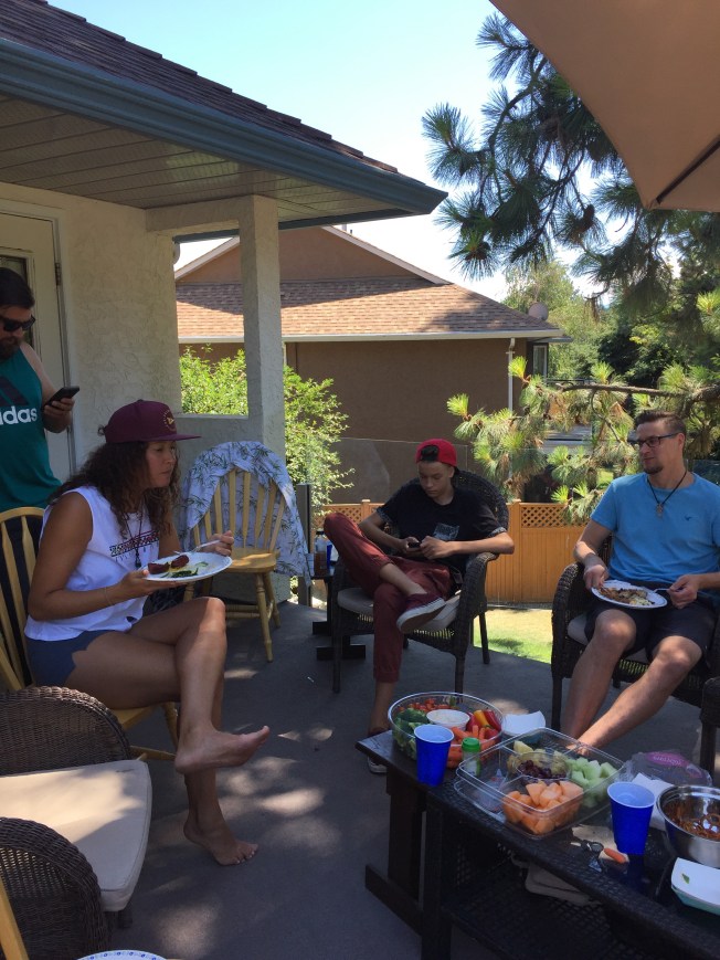 A gathering of generations of family came from all directions to Steve’s Dad Tim and his wife Angela’s beautiful home for a meet and greet barbecue extraordinaire the night before the wedding. It was an absolute delight in every respect … the adults enjoyed getting acquainted and the little people enjoyed mingling in the pool, hot tub and play center! Tim and Angela sure know how to throw a party … wonderful generous, warm hearted hosts!