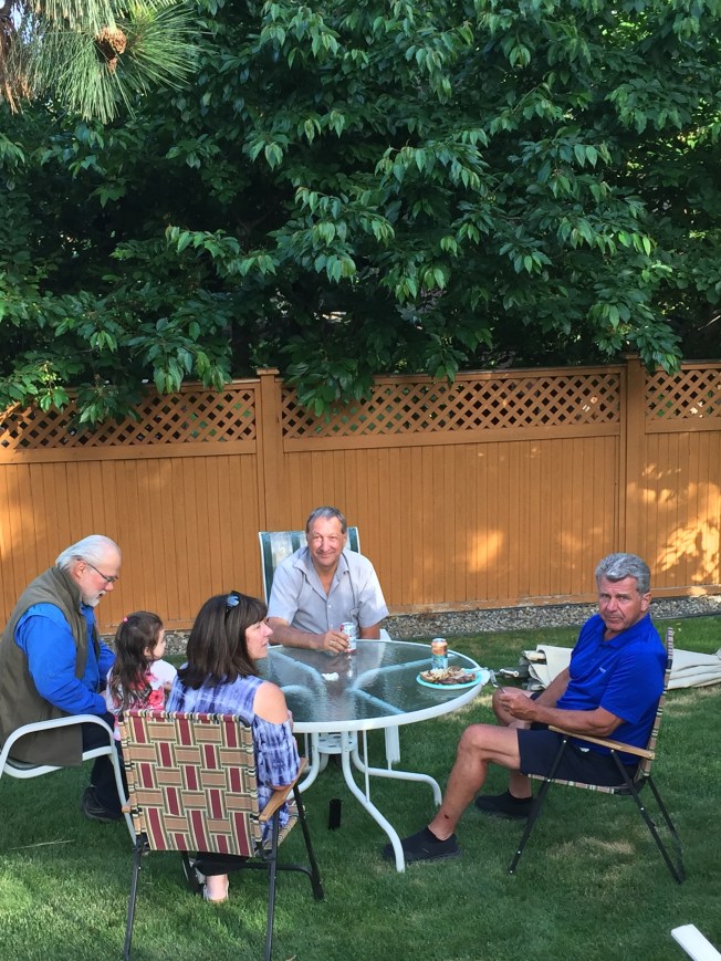 A few weeks later, my Brother-in-law Brad White passed away in the early morning of May 20. He was diagnosed with pharyngeal cancer almost fifteen years ago. The residual damage to his heart and body from the many months of chemotherapy had finally taken their toll. A sad day for the White family and indeed all our extended family. He was a good friend, uncle, great-uncle, brother-in-law to my immediate family. We have so many happy memories of visits to Kelowna, munching on “Brad burgers”, while sitting on the White patio overlooking Sunset Ranch Golf Course. There were many golf holidays around British Columbia, in La Quinta, California, beach fun in Mexico! For a brief time when Margaret and Brad lived in Calgary, we shared many wonderful Sunday dinners together at both our home in Stonepine and their condo in Kensington. Warm poignant memories.