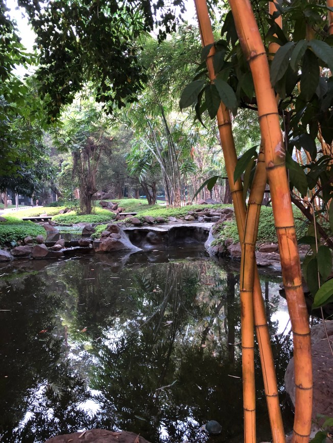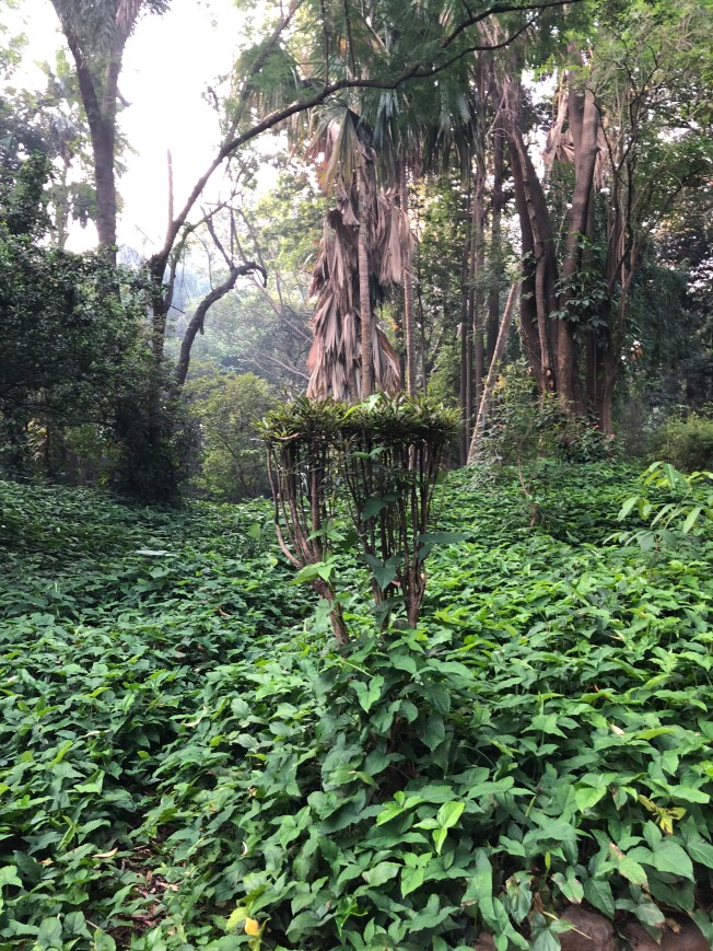 The quiet in the early morning hours is broken only by birdsong. So peaceful. Surprisingly, and I must say, thankfully so, I see no one else strolling in the park! I was told to keep an eye out for snakes by the gate guard, but see none … too early for them as well perhaps. It was an undeniable pleasure to be on actual dirt walking paths!