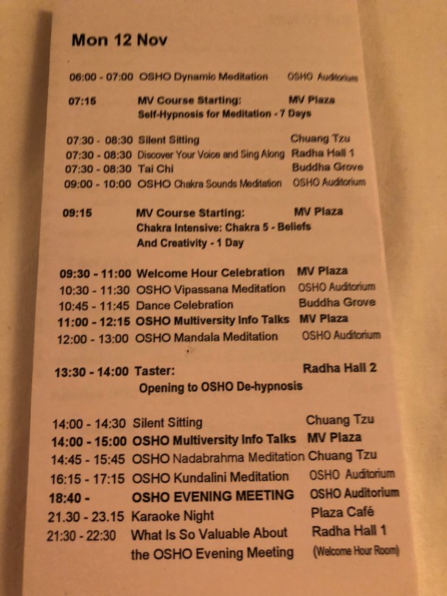 The agenda above on a typical day at Osho ….