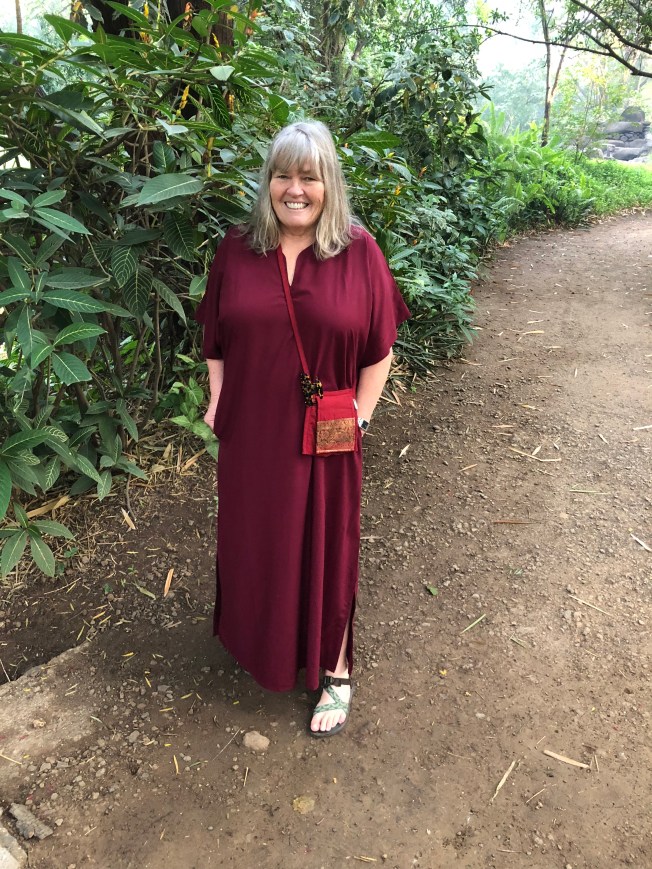 Back at the ranch, as a last resort I chanced to check out the outdoor kiosk a five minute walk from Osho’s. Murphy’s law prevailed! The lady just happened to have a room behind her stall, full of maroon robes, shirts, swim suits, scarves, shawls and oh yes, women’s swimsuits in all manner of sizes!! Cashing in on the Osho maroon mania 😗. I did wonder why the office did not guide me to the kiosk in the first place?? … hmmm … being led astray by well meaning folks, who love to help foreigners is so typical of Indians. Even if they really do not have the answers to your questions, they try regardless to help! I wobble my head side to side, Indian style and say to myself … ‘oh well’ 😊