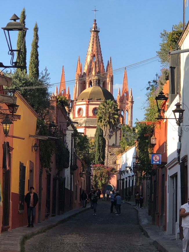 Back to what has most definitely transitioned into my winter hangout, the charmingly cobblestoned colonial-era San Miguel de Allende, Guanajuato in the central highlands of Mexico … known for its baroque Spanish architecture, thriving arts scene and a multitude of cultural festivals! In the city’s historic center the neo-Gothic church Parroquia de San Miguel Arcángel greets us every year. The dramatic pink towers dominate the skyline from the myriad of rooftops in restaurants and homes, hillside streets … well, pretty much wherever you find yourself in SMA!