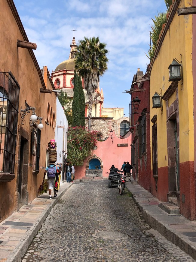 Air Canada recently added a direct flight to Mexico City from Calgary …. yeah!! No American security and long lines to deal with as is the case when flying via Houston to Queretaro! Initially Bev and I were sold on the idea and remain in that ballpark of thought for the time being. The singular negative issue was the necessity and cost of an overnight at an airport hotel in Mexico City, coming and going, combined with a longer shuttle commute to and from San Miguel … a two way cost factor involved … will weigh the pros and cons for next year with a tad more thought! ….. !! The tedium of travel issues and concerns disappear quickly however, the minute my feet land on the cobbly streets of San Miguel de Allende, and adjust to the pleasant rhythms of this charming colonial town in central Mexico!
