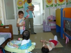 The sweetheart of the ward, one year old Delia is so bright and so normal in developmental milestones mentally, but alas, she has stunted limbs which will make life that much harder for her and basically, she is unadoptable, if there is such a term …. everyone loves her but she continues to live at Sr. Nicholas. ….. I hold this little child and love is all I feel …. She is very very affectionate, making that easy to do! ….. I like to think I helped add to her vocabulary with “mamama and nananana” but I am sure this process was started long ago with other volunteers and I was merely fortunate to be the recipient to hear it with regularity but still, I did notice the surprise the nurses displayed as Delia “nanananaed and mamamaed” in addition to her dadadadas and da’s ( da is yes in Romanian ) …. I am a great baby babbler π